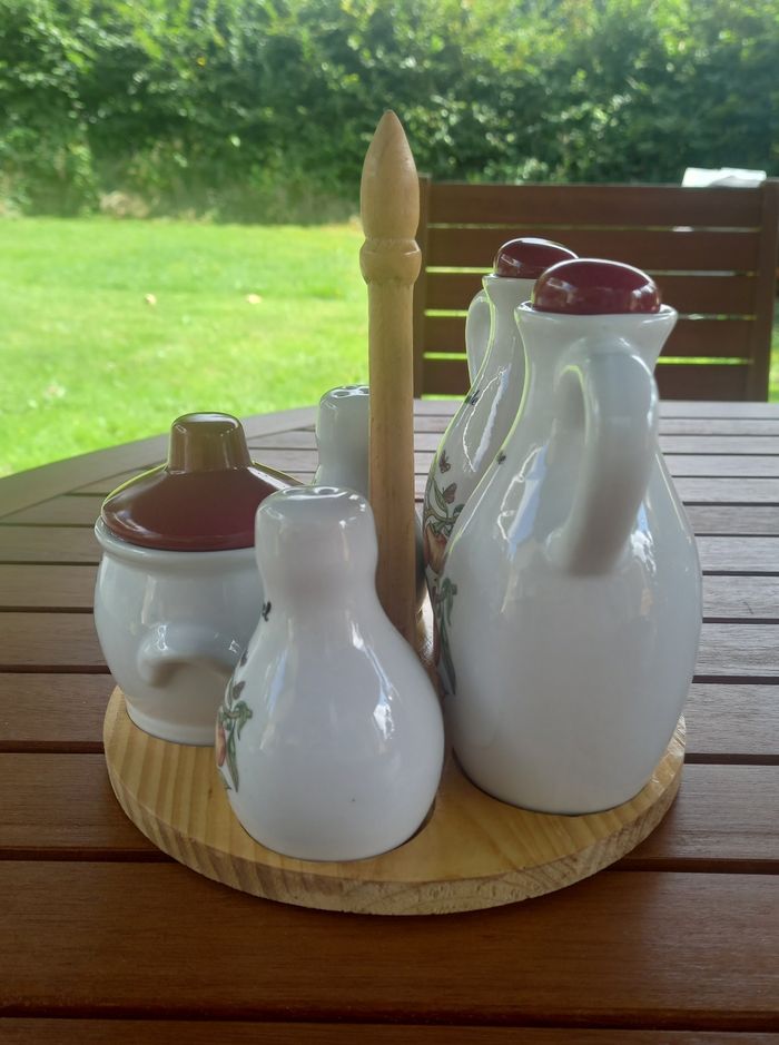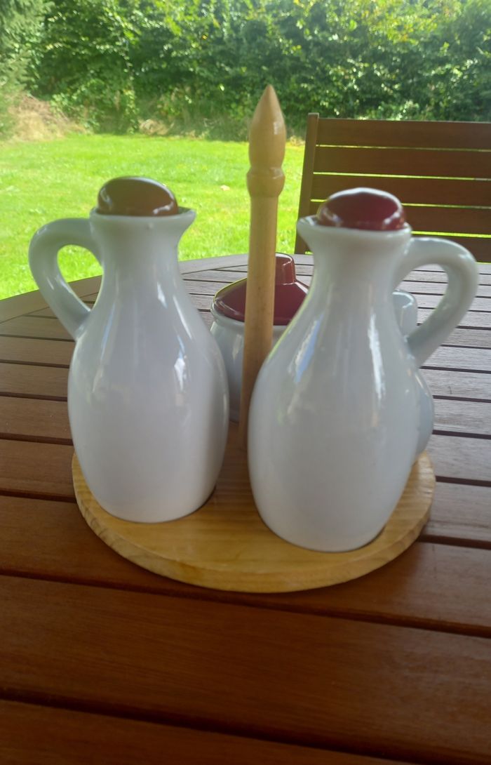 Présentoir pour assaisonnement Plateau en bois récipient en céramique État neuf servi en décoration. Envoie soigné avec mondial relay ou Chronopost.. N'hésitez pas à regarder mes autres offres Réduction sur lot. Merci de votre visite .