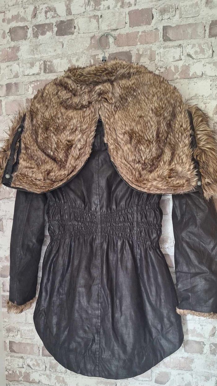FEMME 40/ L N°2473 manteau noir Moumoute marron Fermeture eclair + pression Poche , Elastique taille Capuche, col Fermeture eclair Amovible 93% polyester 7% nylon Longueur 83 cm Taille 40 / L Breal Neuf plus d étiquette 🏷 25 € #kelly_femmeT40