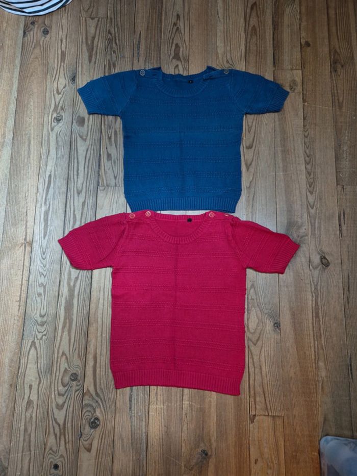 Lot de 2 pulls à manches courtes pour femme. En taille 3, convient pour un 38-40. En bon état.