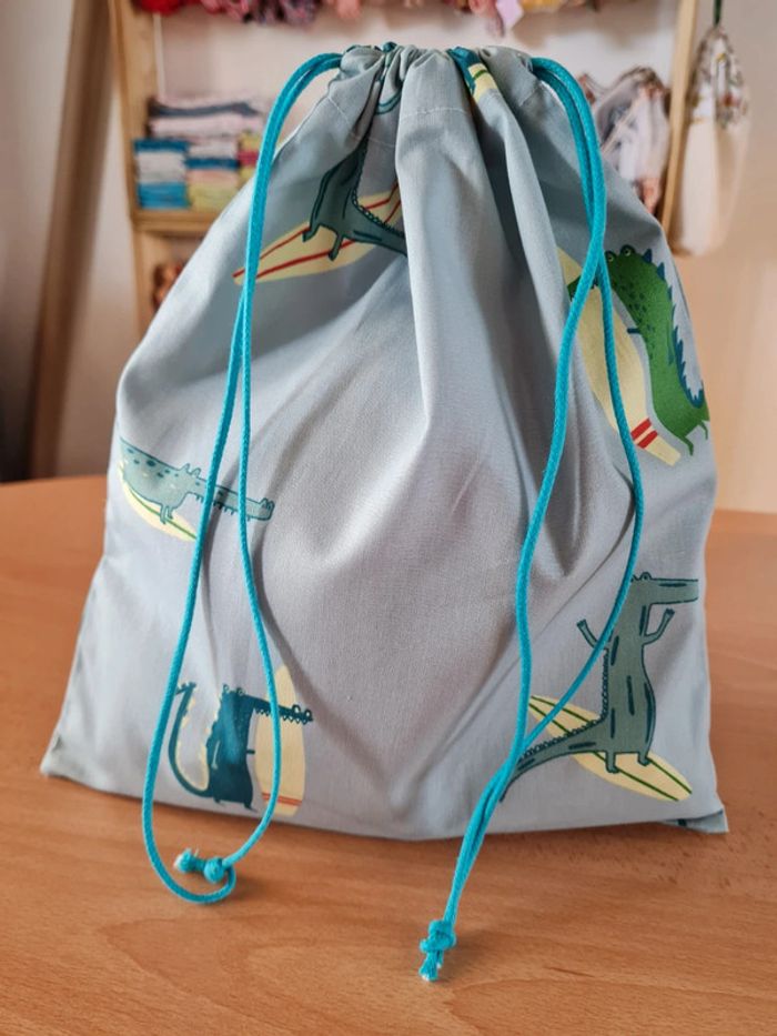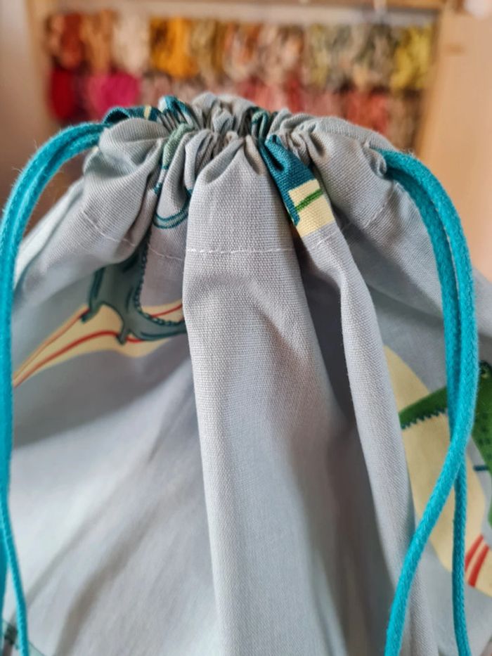 Idéal pour ranger les chaussons pour l'école, pour y glisser des petites fournitures, le goûter, dans une chambre pour y ranger ses petits jouets. Beaucoup de possibilités pour l'usage de ces pochons .