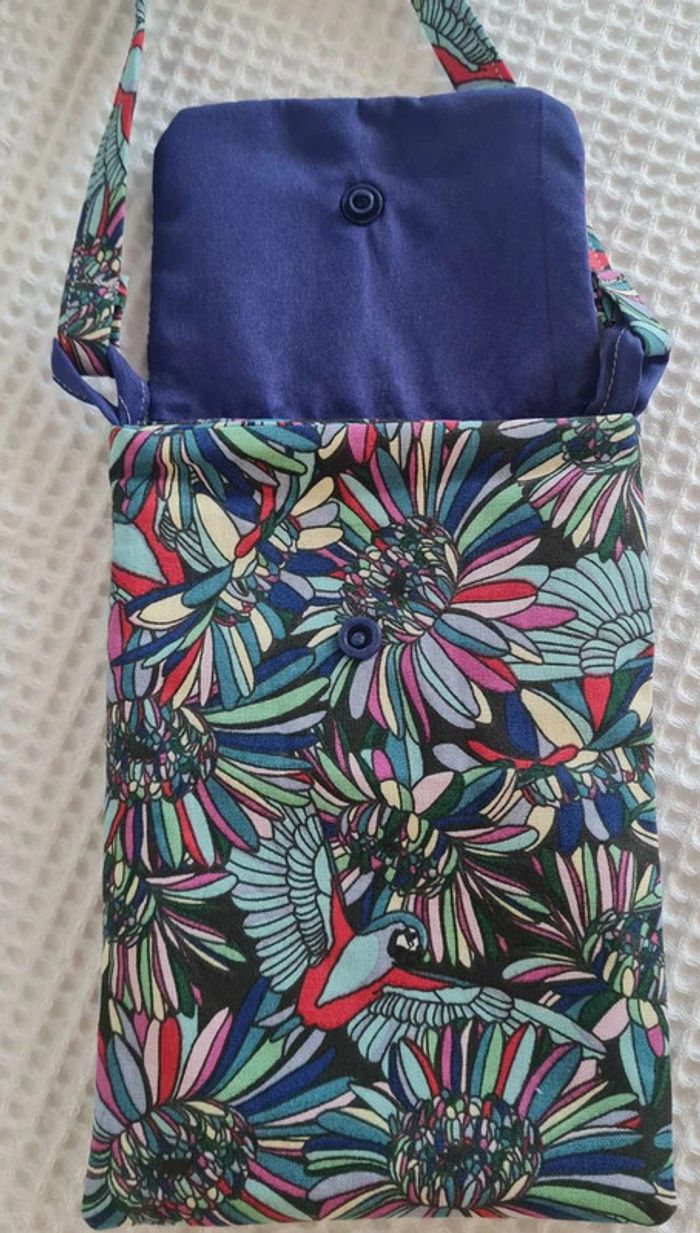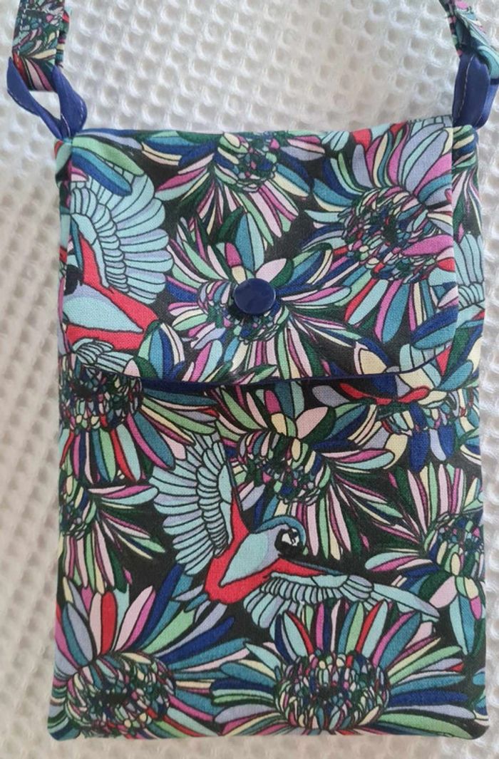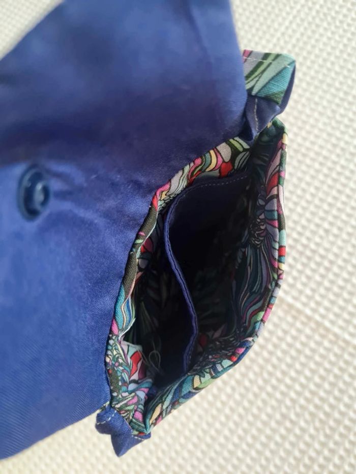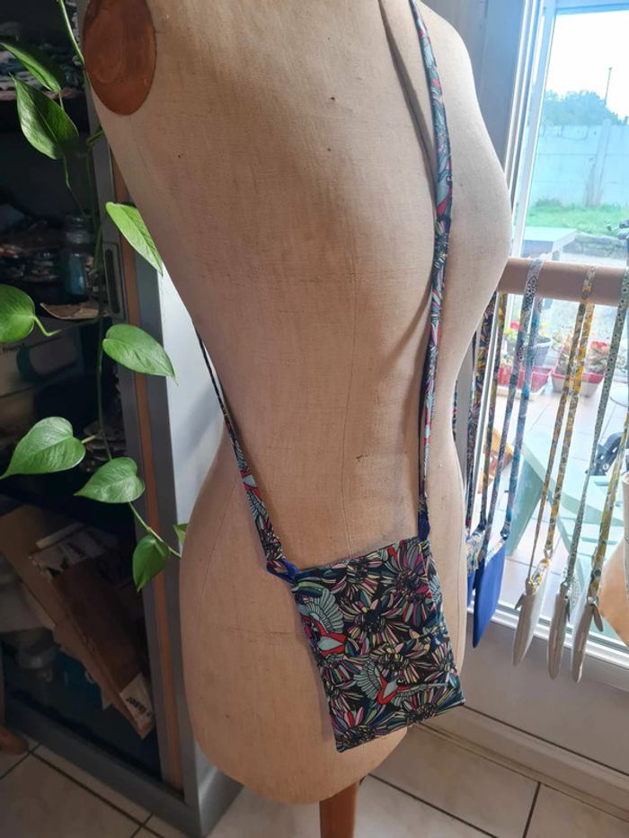 Cette sacoche à bandoulière saura trouver sa place pour de multiples usages dans votre quotidien! Très pratique pour y glisser vos papiers importants à avoir toujours sous la mains lors de vos voyages, excursions, ballades... Elle pourra vous servir d'étui pour y ranger votre téléphone, lunettes, clés... A porter en bandoulière ou tout simplement autour du cou. Son intérieur est entièrement doublé avec une séparation pour permettre deux rangements différèrent Son rabat permet une fermeture avec un bouton pression dimension: longueur de la sangle environ 120 cm 13 x 18 cm environ Lavable en machine à 40°c Fabrication artisanale
