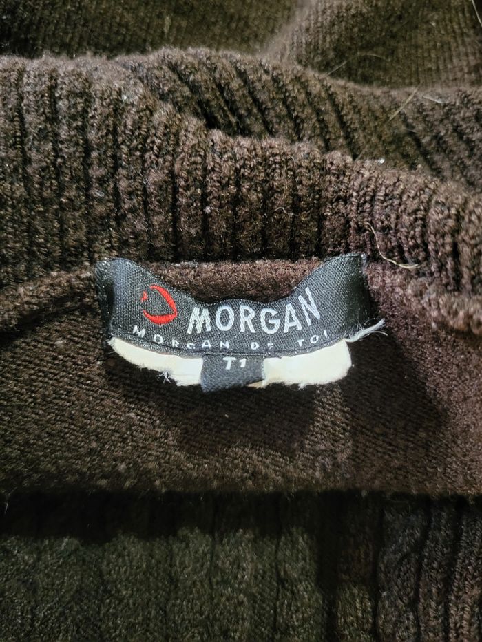 Pull marron Morgan Taille 1 Avec grand col. Manches larges Pull "long" Il y a des pluches Sera bien sur nettoyé avt envoi.
