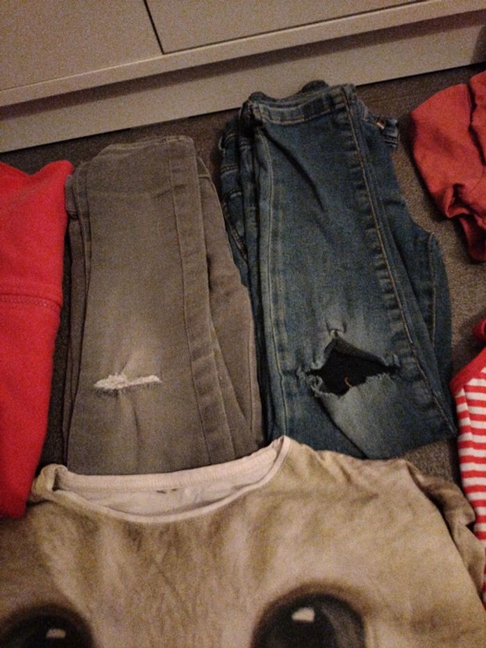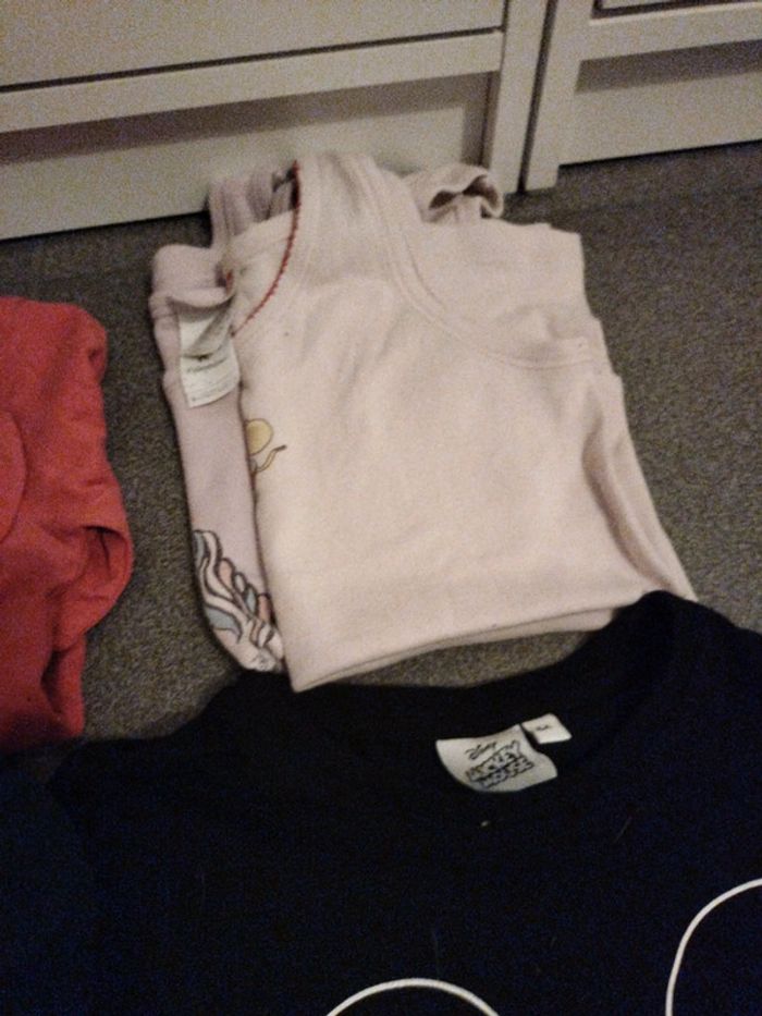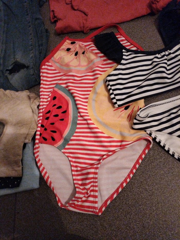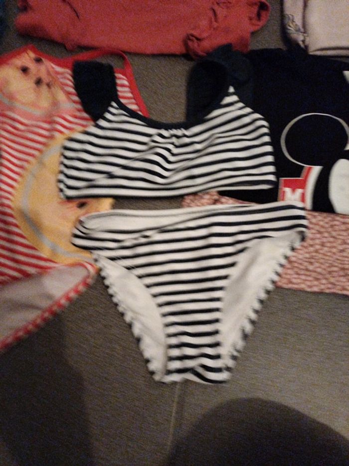 Avec un maillot neuf un bikini,3 tee shirt longue manches dont un mango,un gilet zippé avec capuche esprit ,2 chemisettes,deux jeans trouée un Mexx l'autre okaidi ...le prix demandé n'est même pas celui du prix de achat du maillot de chez Veritas