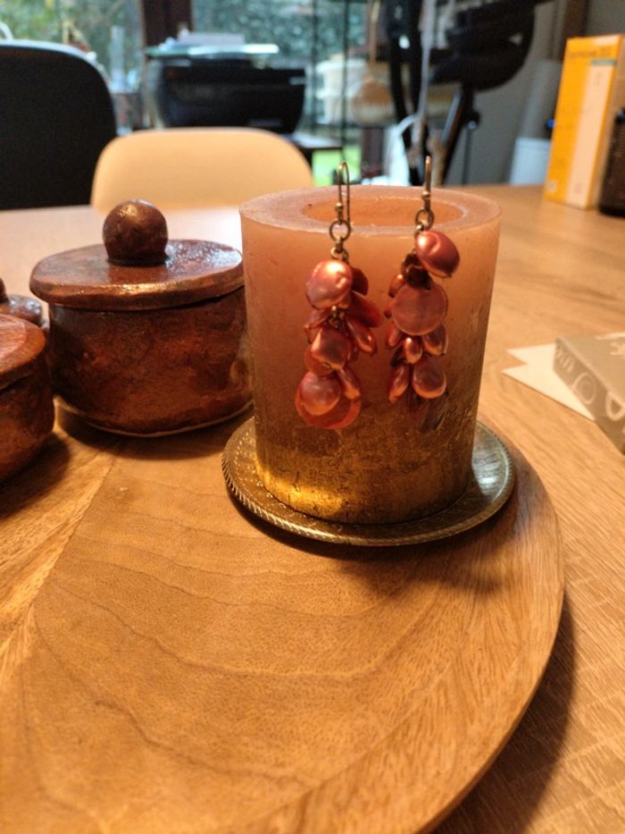 Boucles d'oreilles pendantes nacre Rose - photo numéro 3