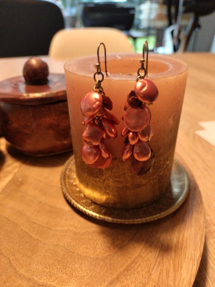 Boucles d'oreilles pendantes nacre Rose