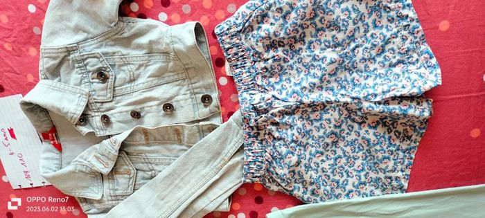2 pantacourts neufs,une veste en jeans impeccable,2 shorts,un maillot jamais mis et une chemisette