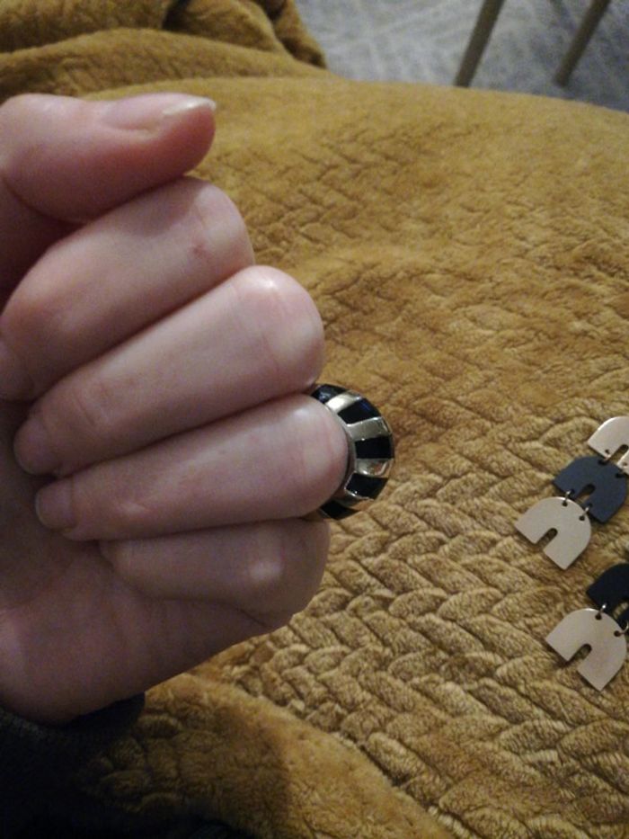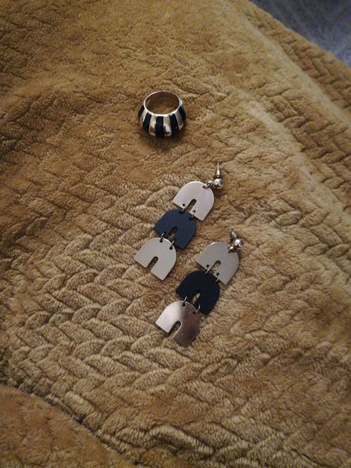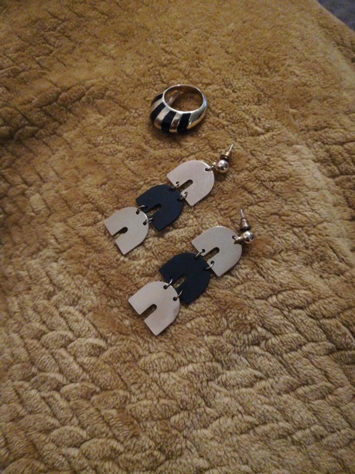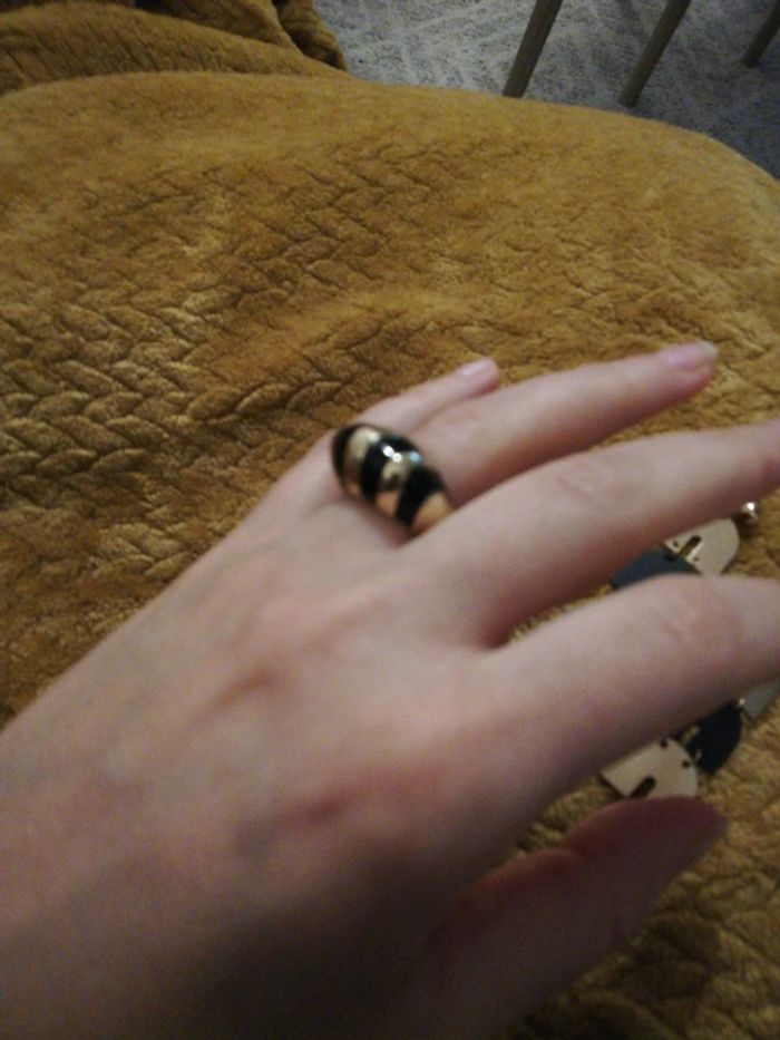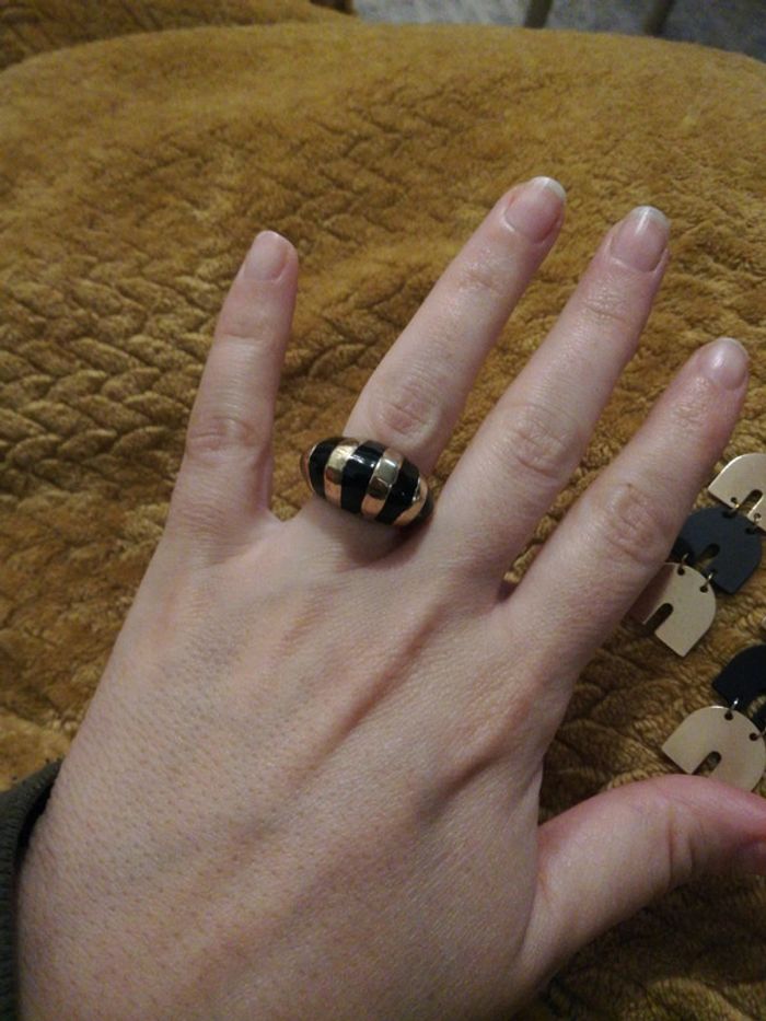 Bague dorée et noir très bon état et boucles n d'oreilles assorties noir et doré
