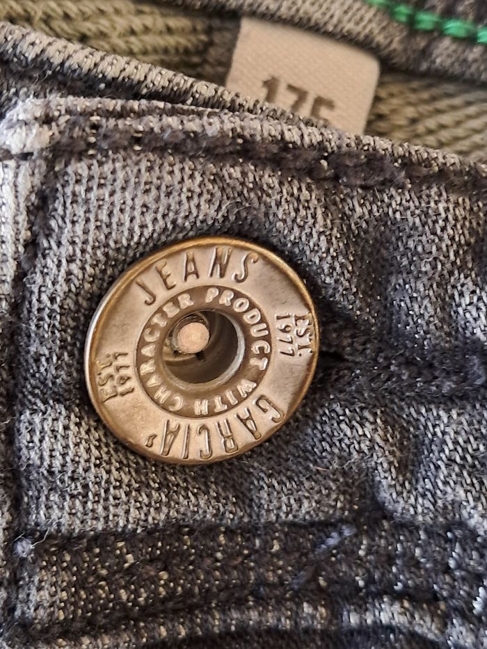 Jean gris marbré slim fit 176 Bouton, Poinçon de la marque Logo derrière le pantalon Voir photos pour les matières, longueur et largeur du pantalon