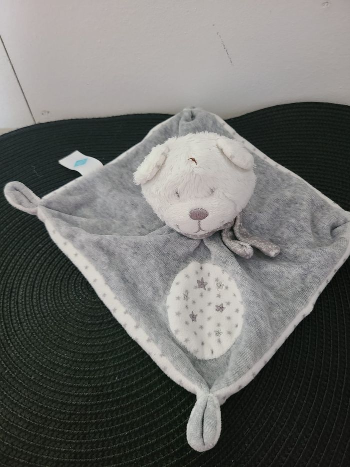 Doudou plat ours blanc gris étoiles TEX BABY - photo numéro 1