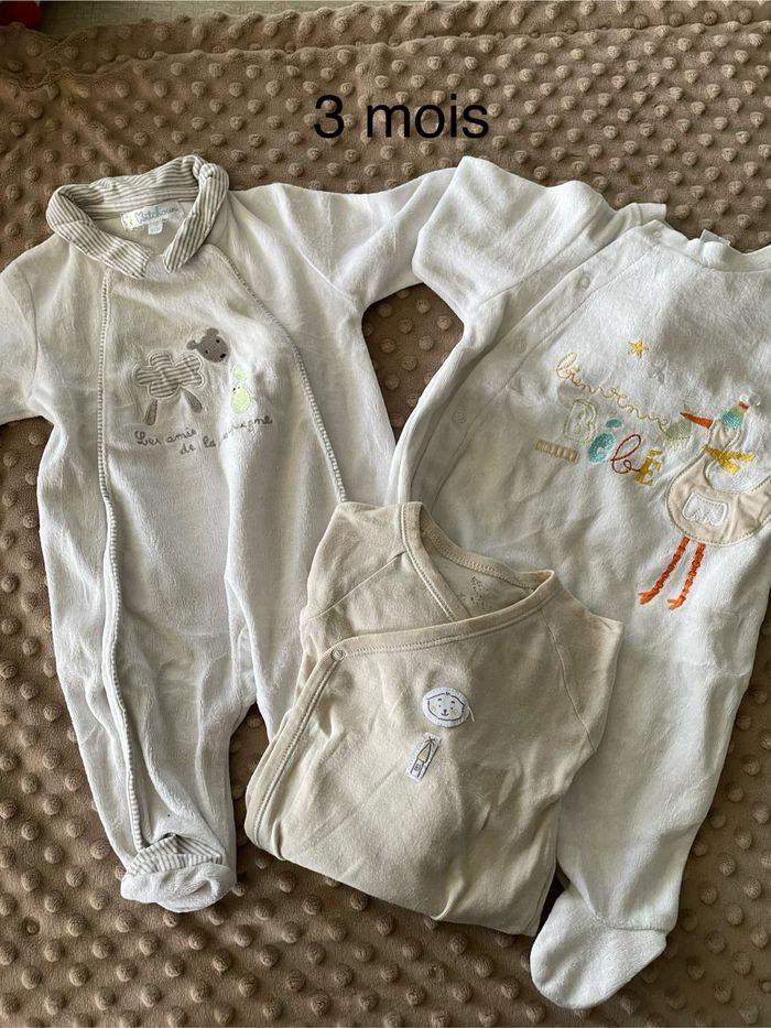 2 pyjamas et 1 body en manche longue Taille : 3 mois