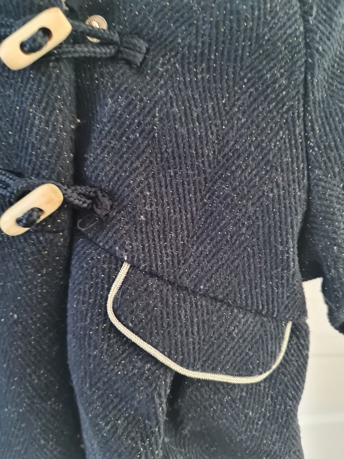 Très beau manteau 3 mois Bleu marine à paillettes, détails dorésmante Neuf jamais porté juste lavé