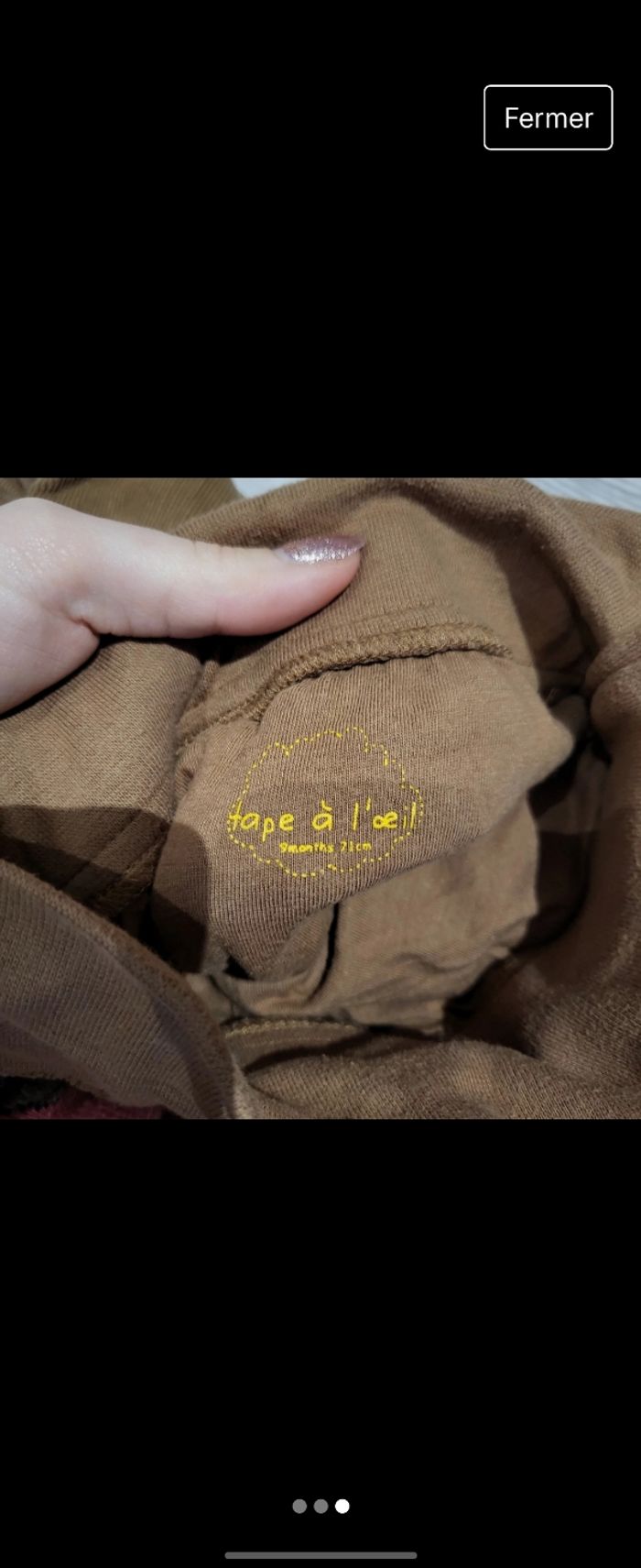Lot de deux pantalons en 9 mois Très bon état pour les deux Un Benetton et un Tape à l'œil.