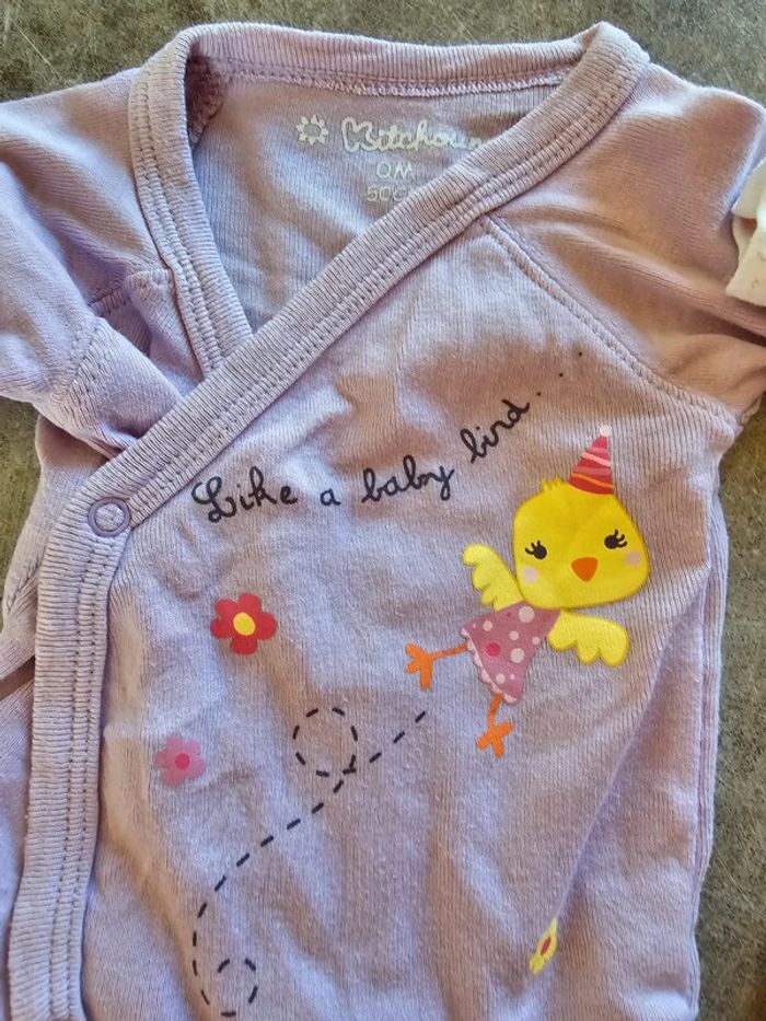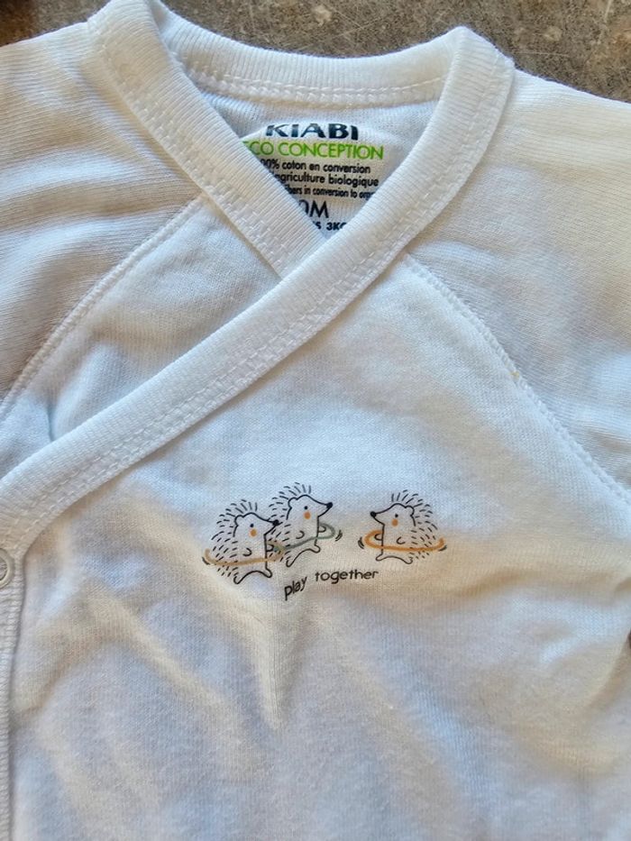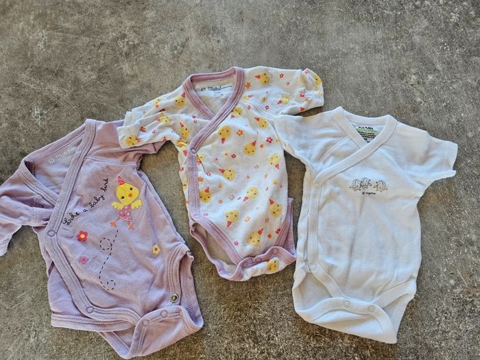 Lot de 3 bodys manches courtes tailles naissance 50cm Marque kitchoum et kiabi Très bon état