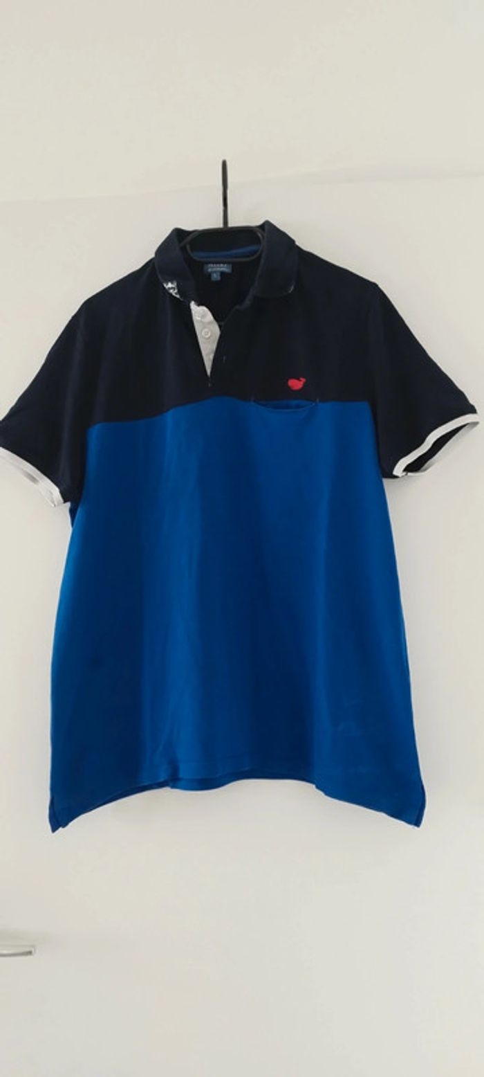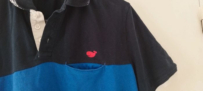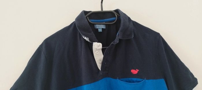 Polo homme bi colore manches courtes. Petite poche sur le devant. Col motif baleine 🐋