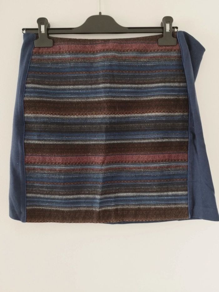 Jupe courte rayé sur le devant, unie derrière