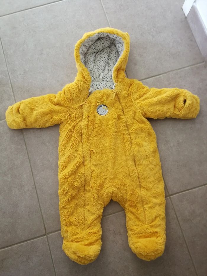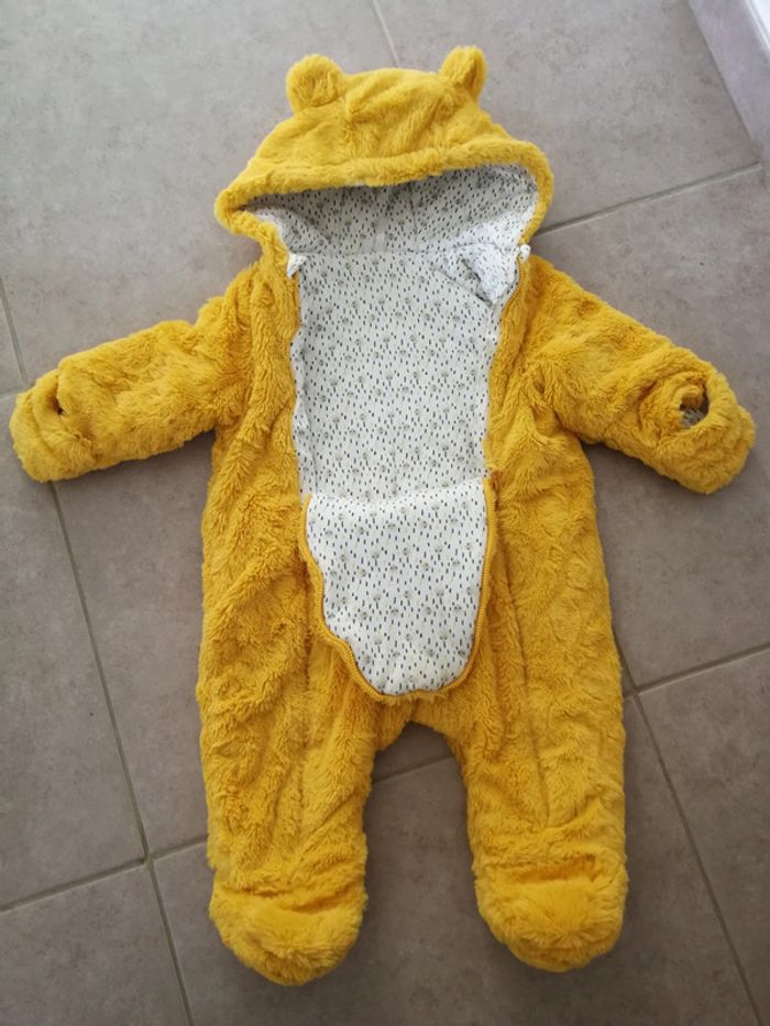 Vend combinaison pilote jaune avec intérieur motifs souris. Capuche avec oreilles.