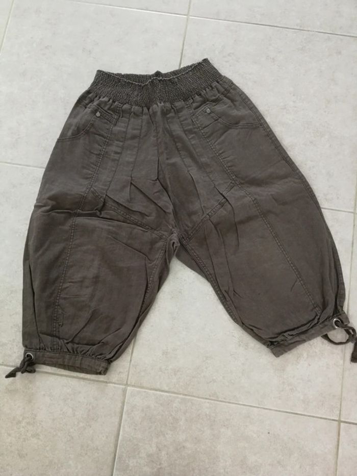 Pantacourt en toile avec smock a la taille - photo numéro 2