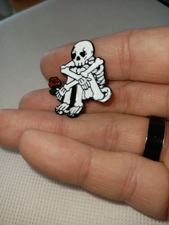 Pins neuf squelette avec sa rose - photo numéro 4