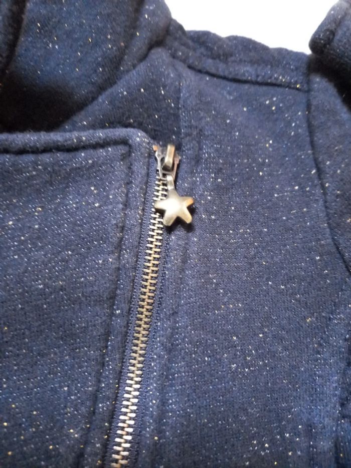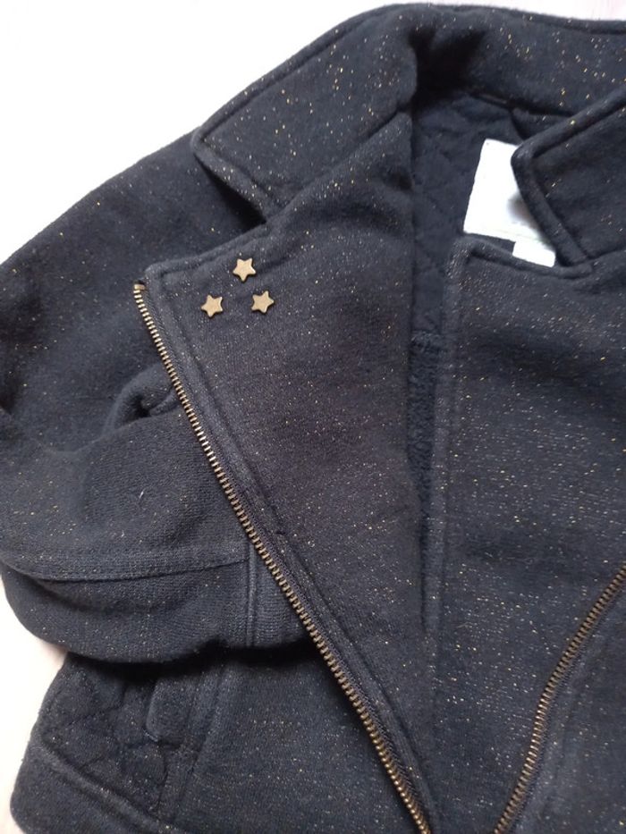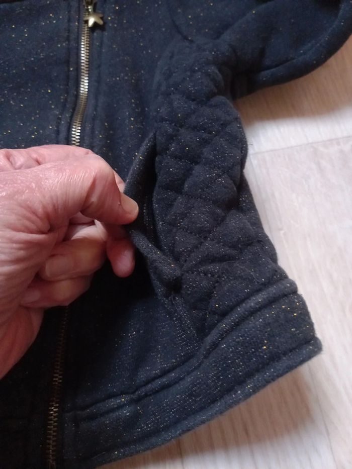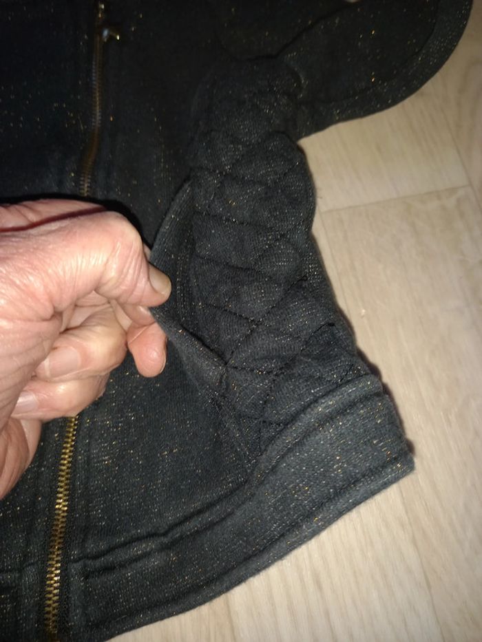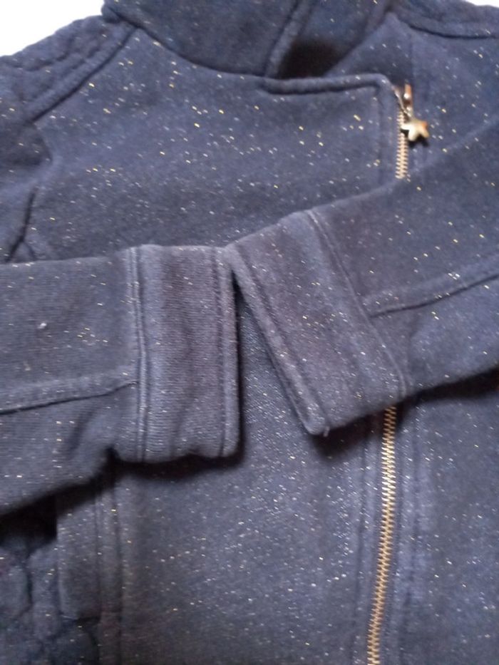 Veste épaisse matelassée en excellent état, portée 1 fois car achetée trop juste Étoiles et petits points de couleur dorée Dos plus court que le devant #mamoune1906_fille_5ans