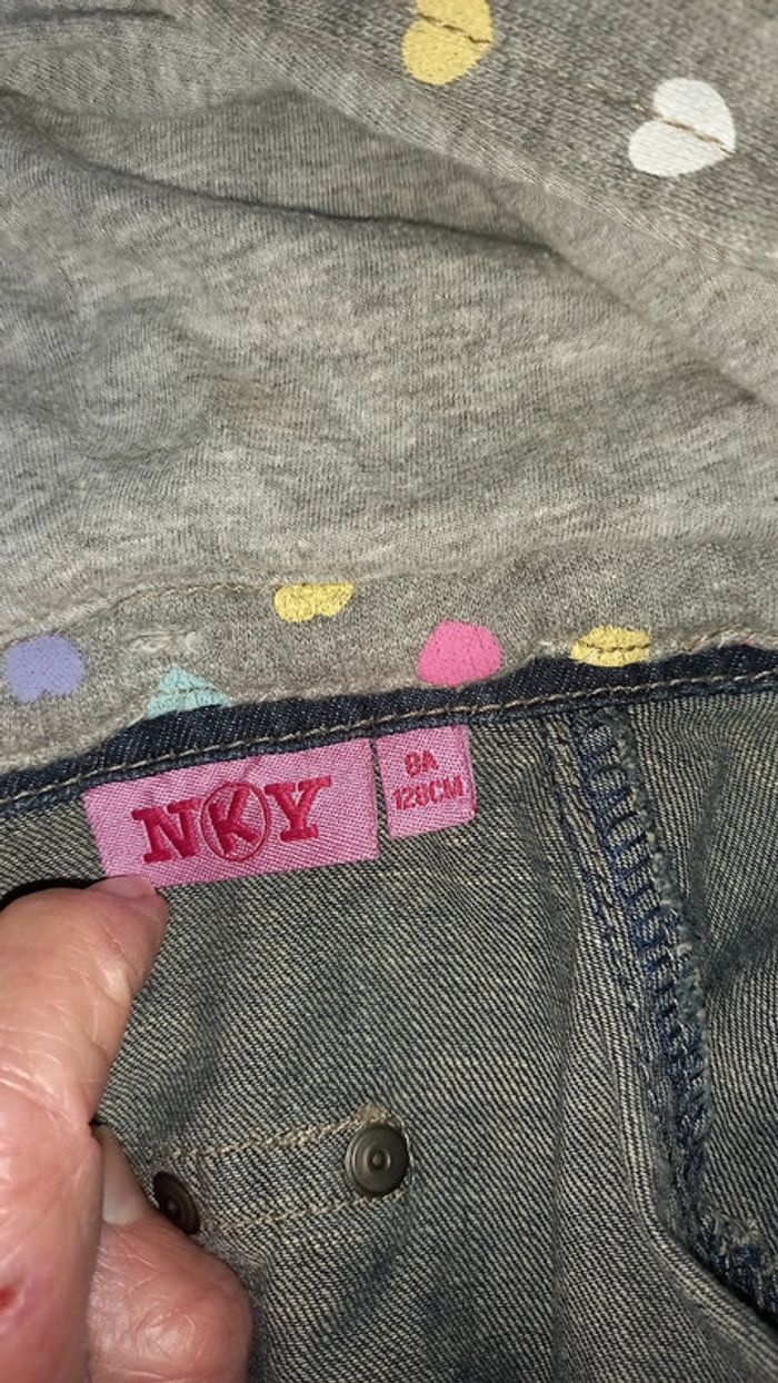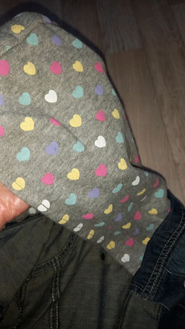 Blouson en jean avec capuche en molleton Jolis petits cœurs multicolores sur la capuche #mamoune1906_fille_8ans
