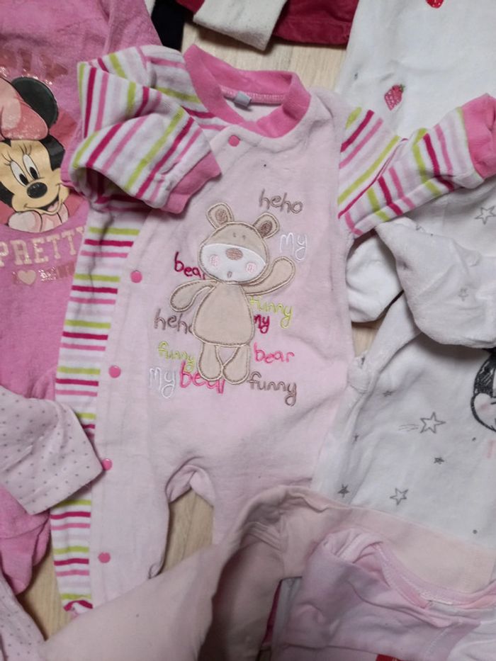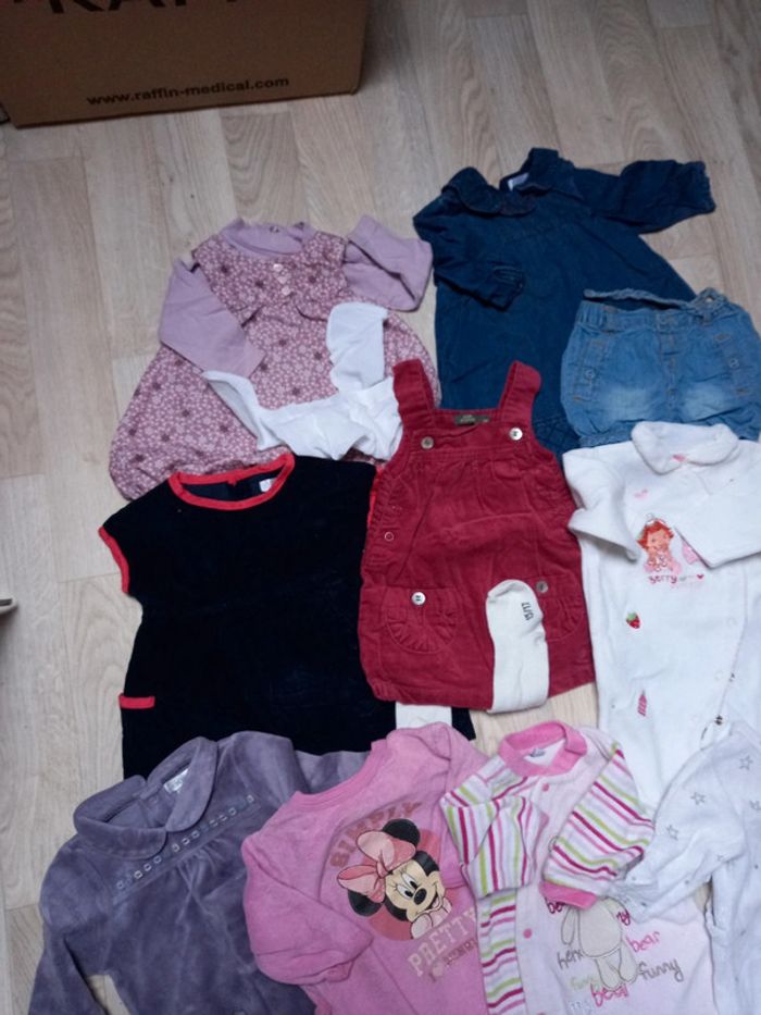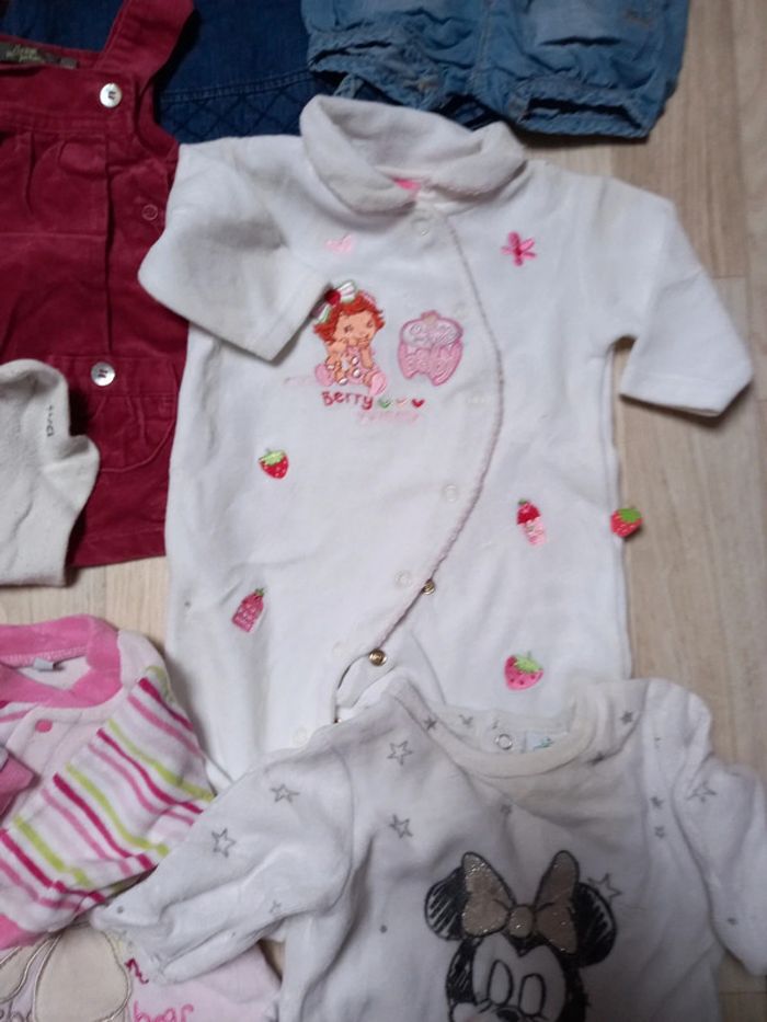 Lot de vêtements divers en bon et très bon état comprenant 6 pyjamas en velours 3 bodys manches longues 4 robes 1 short 2 collants #mamoune1906_fille_3mois