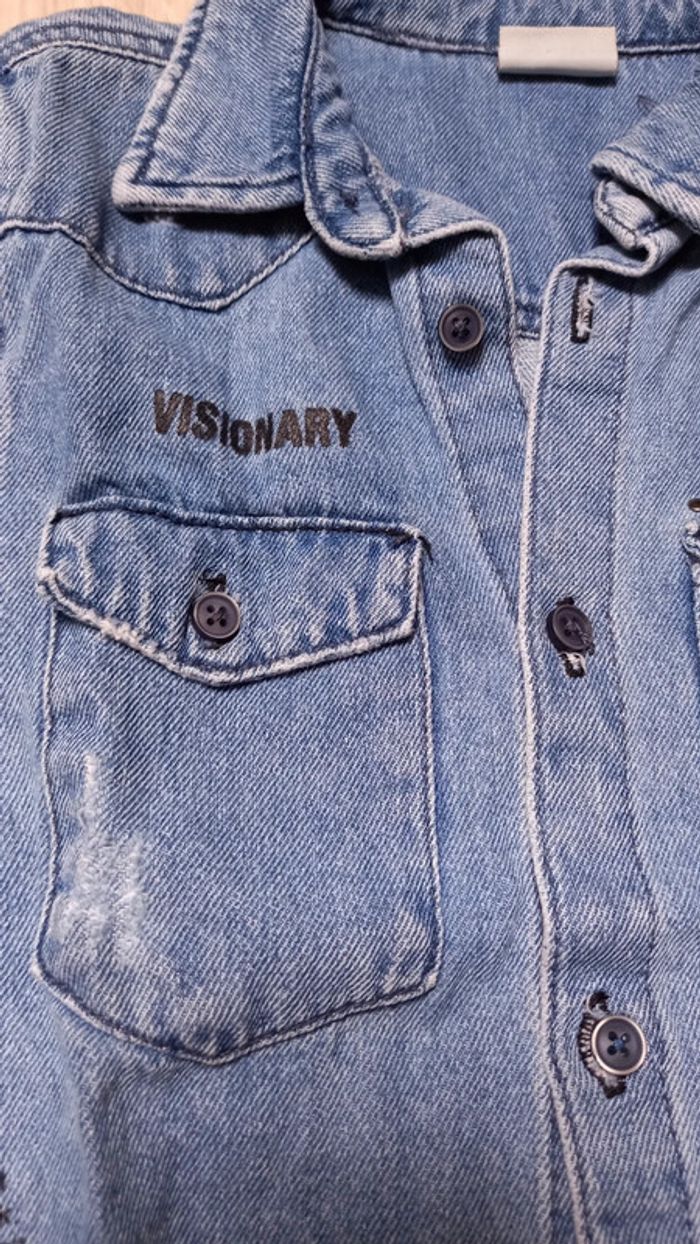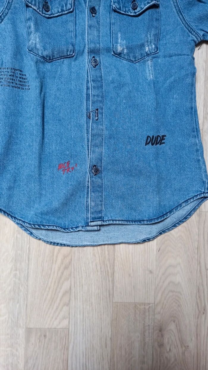 Chemise en jean forme liquette neuve Nombreux détails devant et au dos Peut se porter au dessus d'un pull ou tee shirt #mamoune1906_garçon_9ans