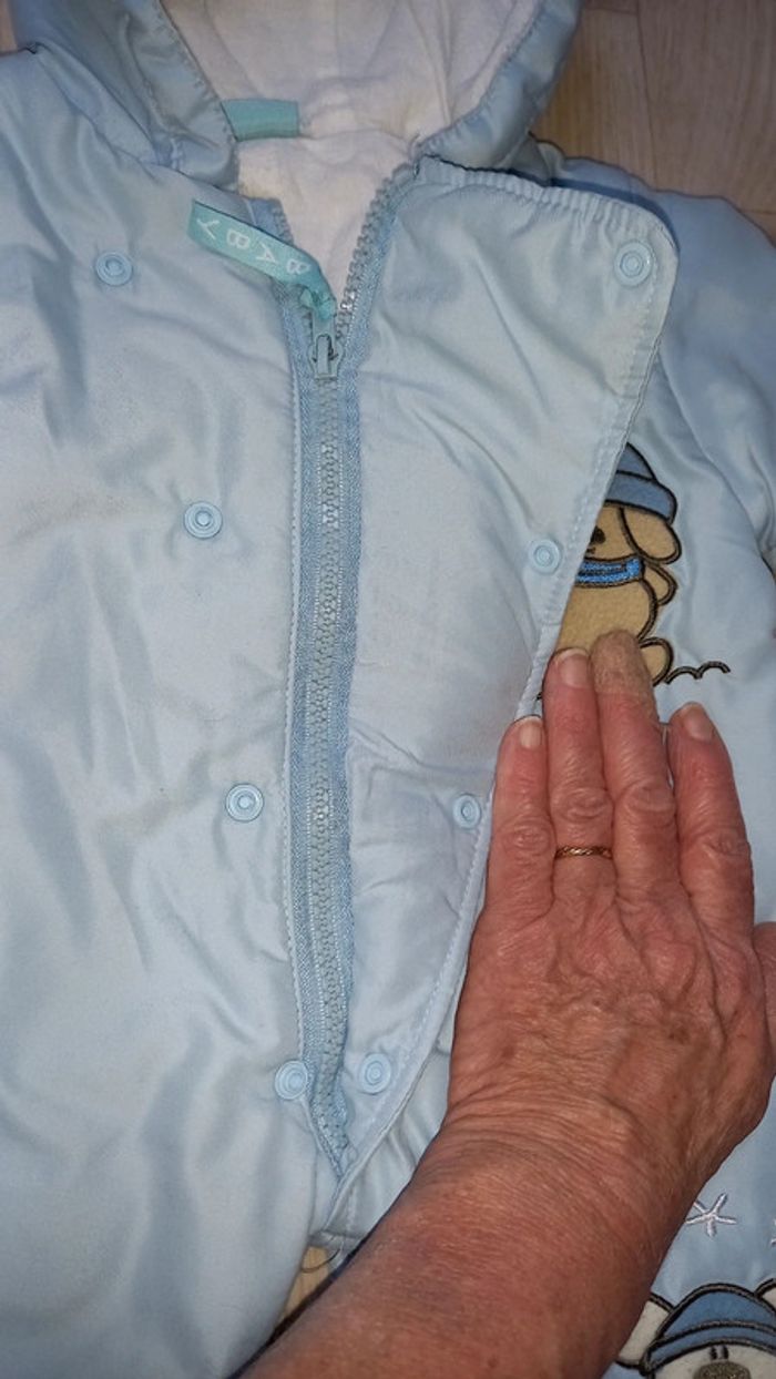 Combinaison à capuche comme neuve avec pieds non amovibles Doublée en molleton tout doux et chaud Taille : écrit 0/3 mois mais taille comme une 3 mois du dressing ( voir dernière photo) #mamoune1906_garçon_3mois