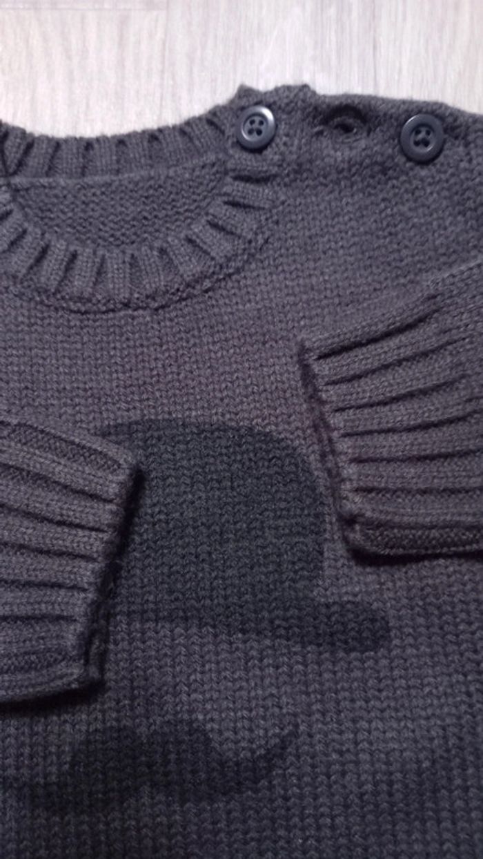 Pull épais à col rond Boutonné sur l'épaule Dessin " moustache" #mamoune1906_garçon_18mois