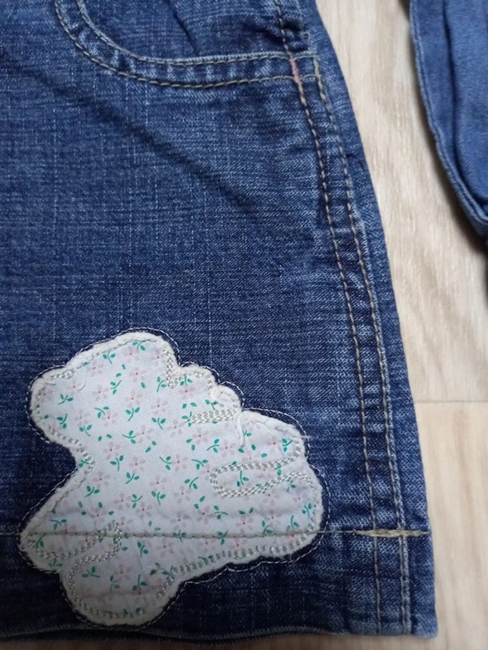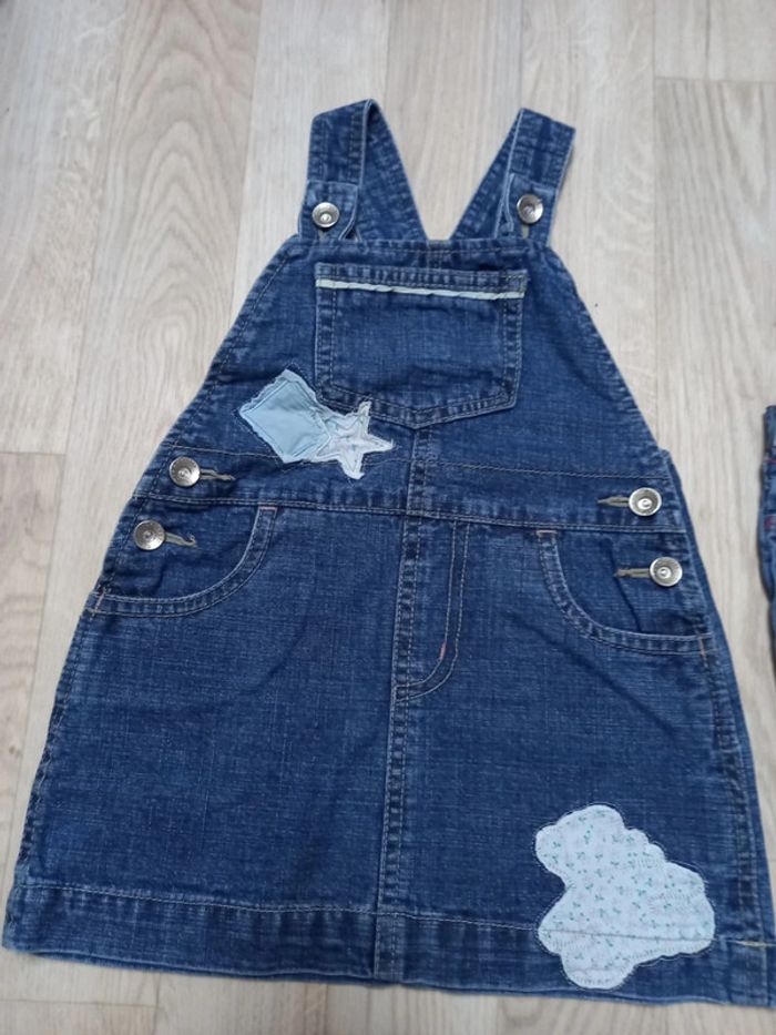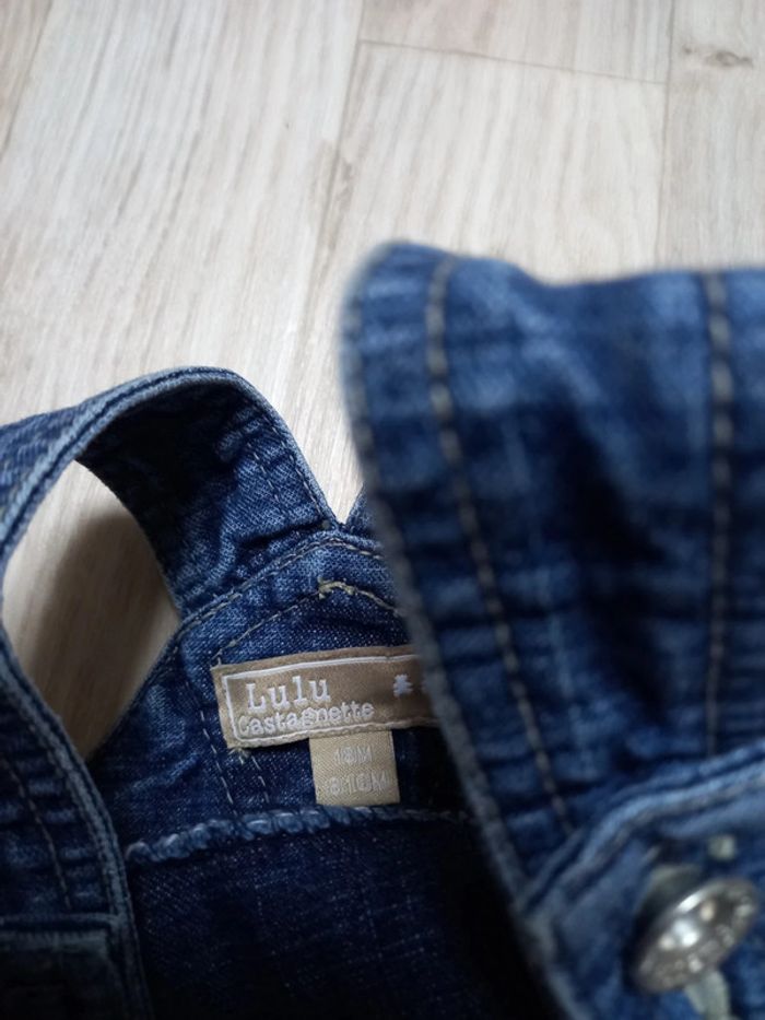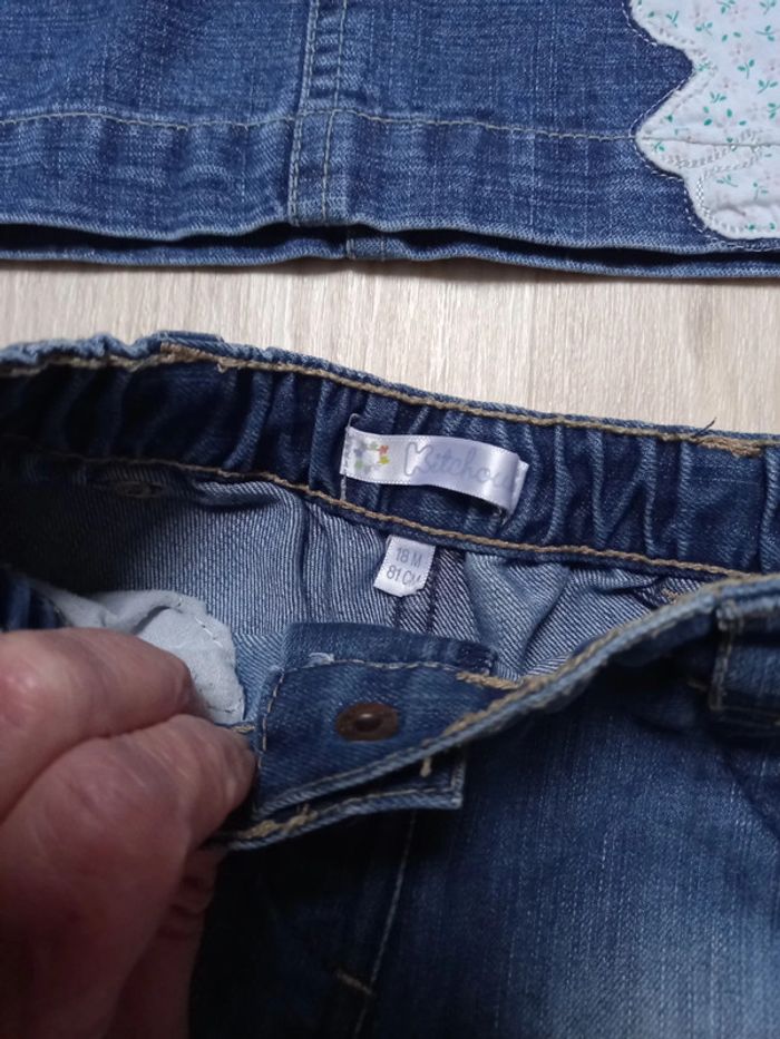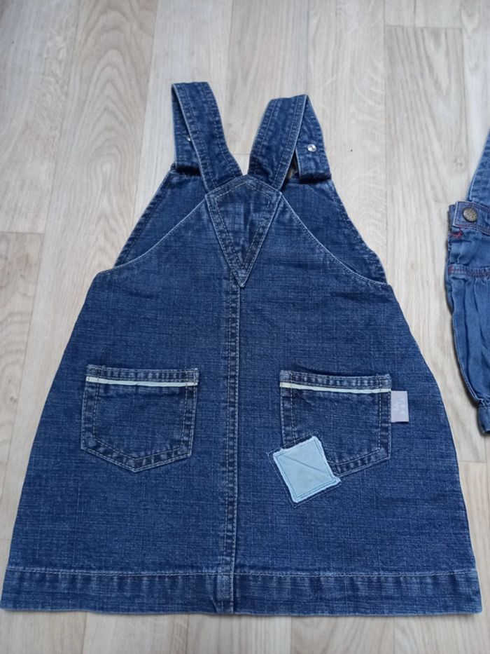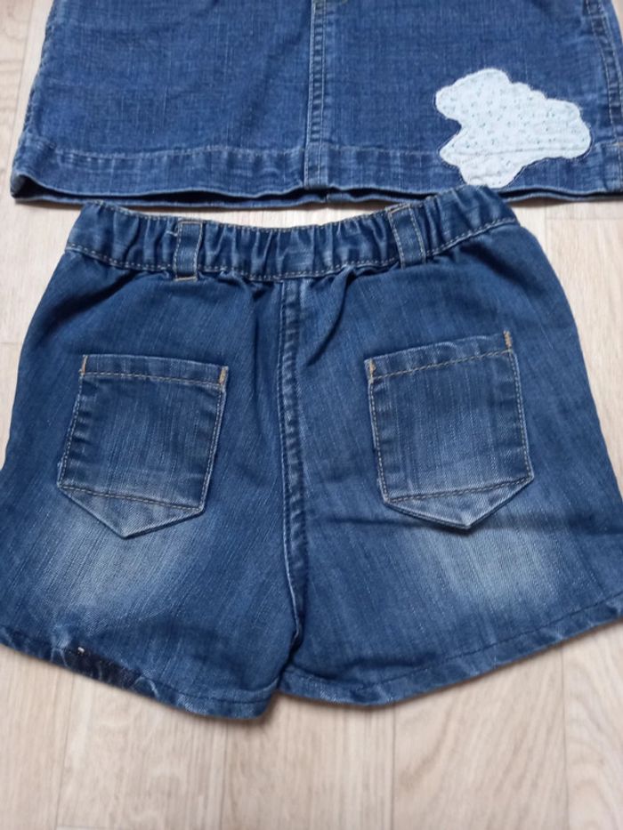 Lot de 4 vêtements en jean en excellent état 1 short marque Kitchoun 1 jupe salopette marque Lulu Castagnette, 1 jupe Kitchoun 1 short salopette marque In extenso #mamoune1906_fille_18mois