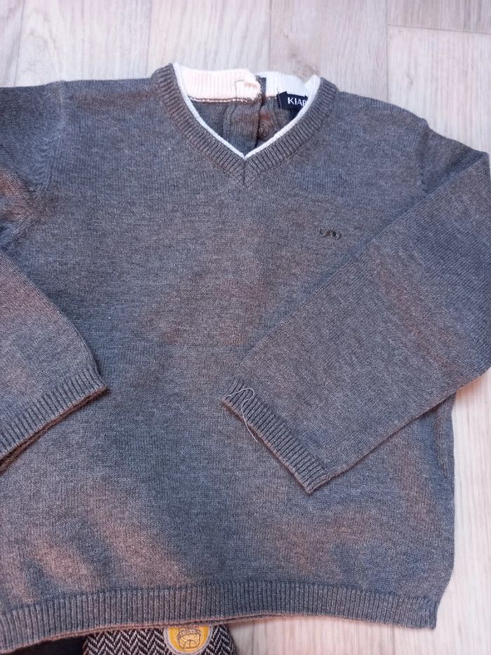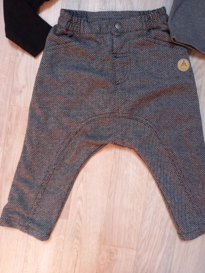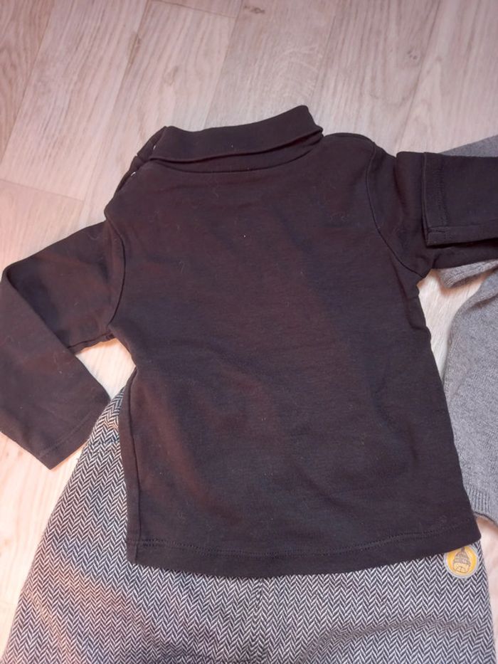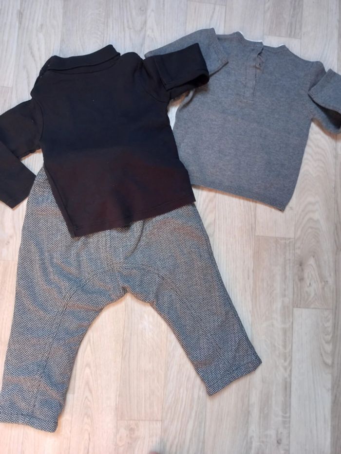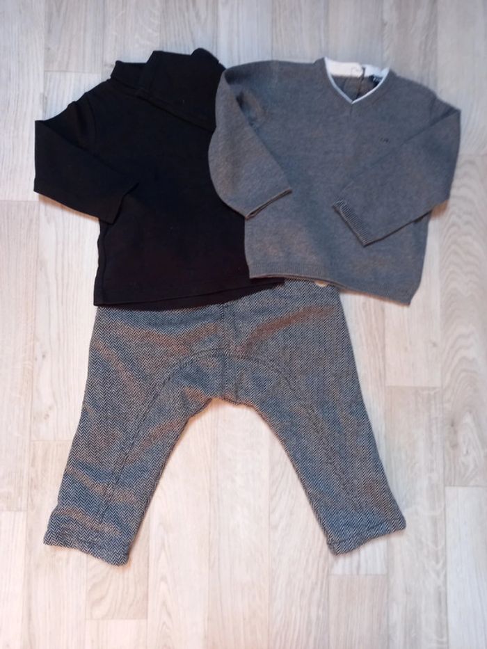 Lot de 3 pièces en excellent état Pantalon de marque Orchestra style sarouel doublé très épais et chaud Sous pull noir et pull col V gris #mamoune1906_garçon_18mois