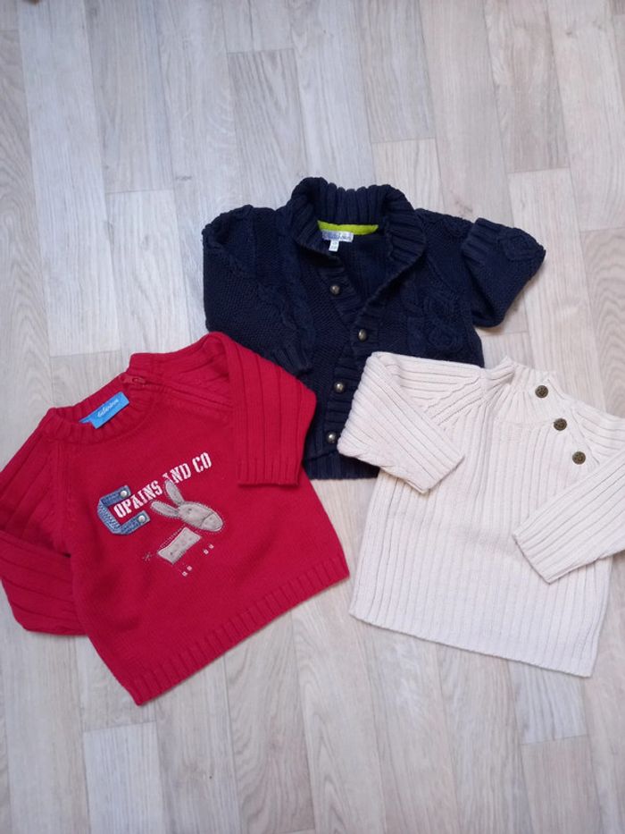 Lot de 3 hauts à manches longues dont 2 neufs 2 pulls épais neufs et 1 gilet Diverses marques et coloris #mamoune1906_garçon_12mois