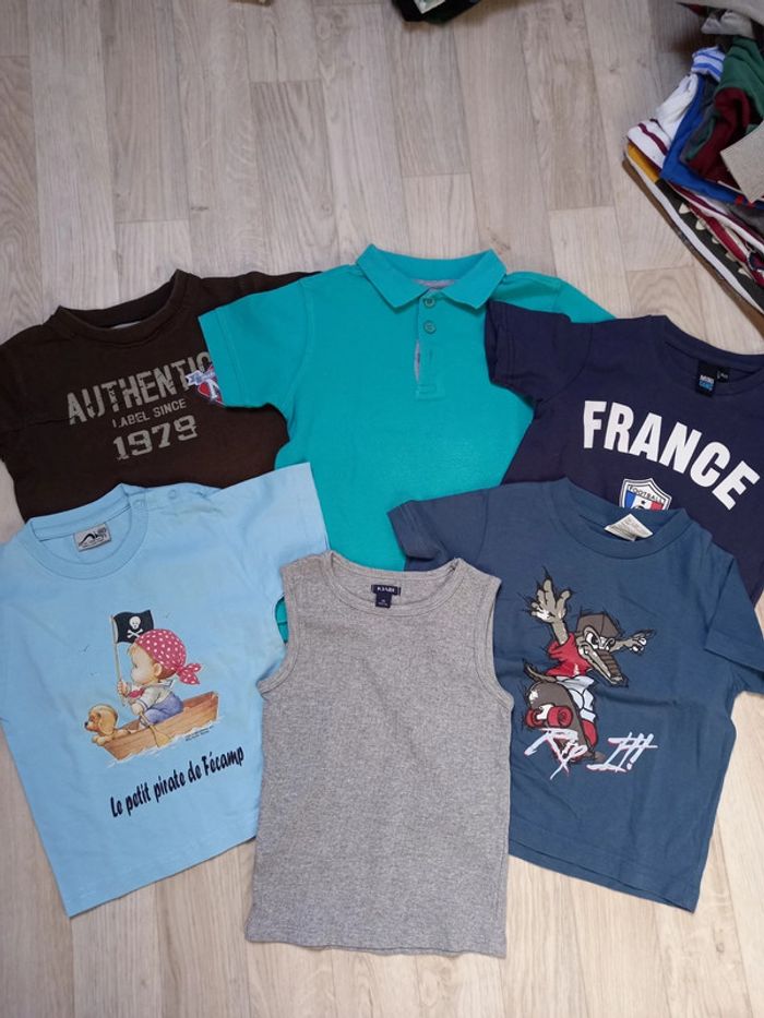 Lot de 6 tee-shirts en excellent état 1 polo, 4 tee-shirts manches courtes, 1 débardeur neuf Diverses marques #mamoune1906_garçon_3ans
