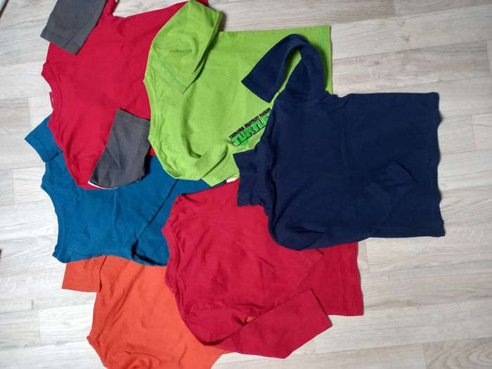 Lot de 6 hauts en excellent état Divers coloris et diverses marques: DPAM, Spiderman, Turtle Nina Cars, Lapins crétins, Palomino #mamoune1906_garçon_4ans