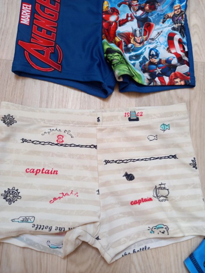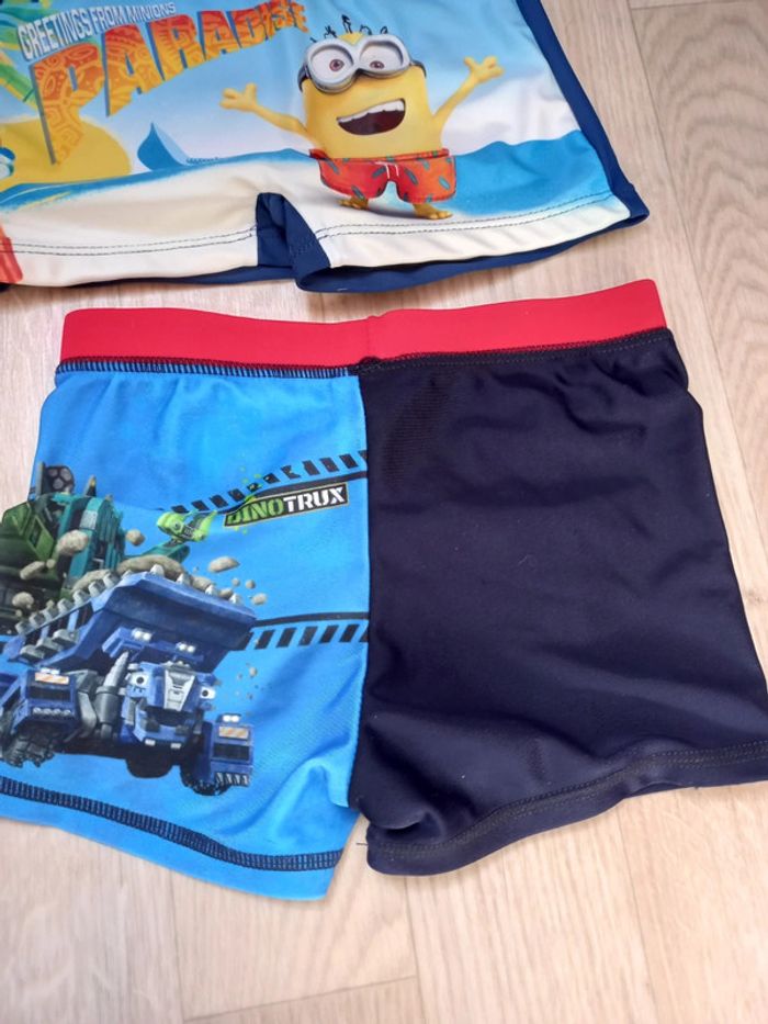 Lot de 4 boxers de bain dont 2 neufs et 1 porté 1 fois Avengers, Minions, Monstres, autre #mamoune1906_garçon_4ans