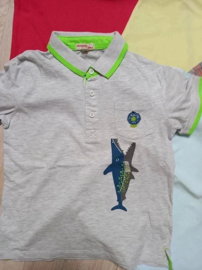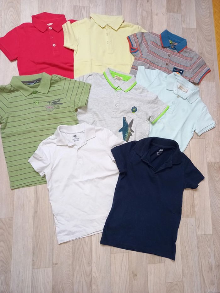Lot de 8 polos en excellent état , 6 jamais portés, et 2 portés 1 fois Les Unis (vert d'eau, jaune et rouge) sont de marque Zara Les Unis marine et blanc sont de marque H&M Le gris avec le requin est de marque Du Pareil au même Le gris rayé est de marque Orchestra Le vert rayé est de marque NKY #mamoune1906_garçon_6ans