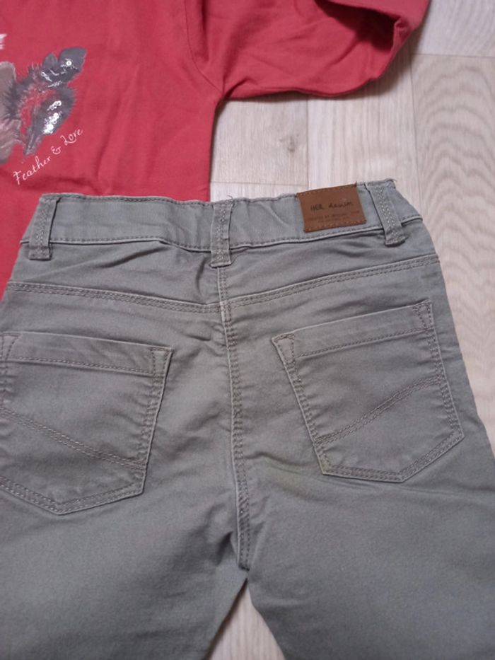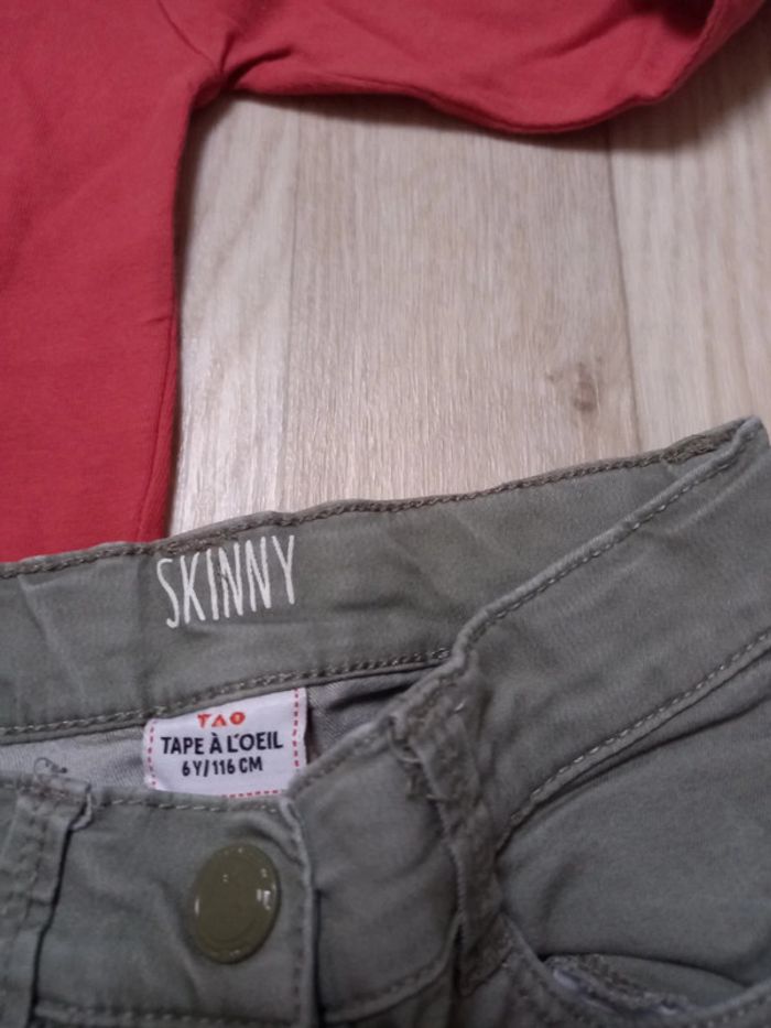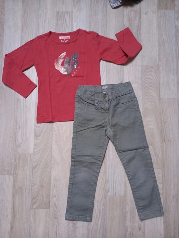 Ensemble 2 pièces en excellent état, porté 1 fois Jean slim TAO couleur vert Haut à manches longues In extenso couleur bordeaux clair #mamoune1906_fille_5ans
