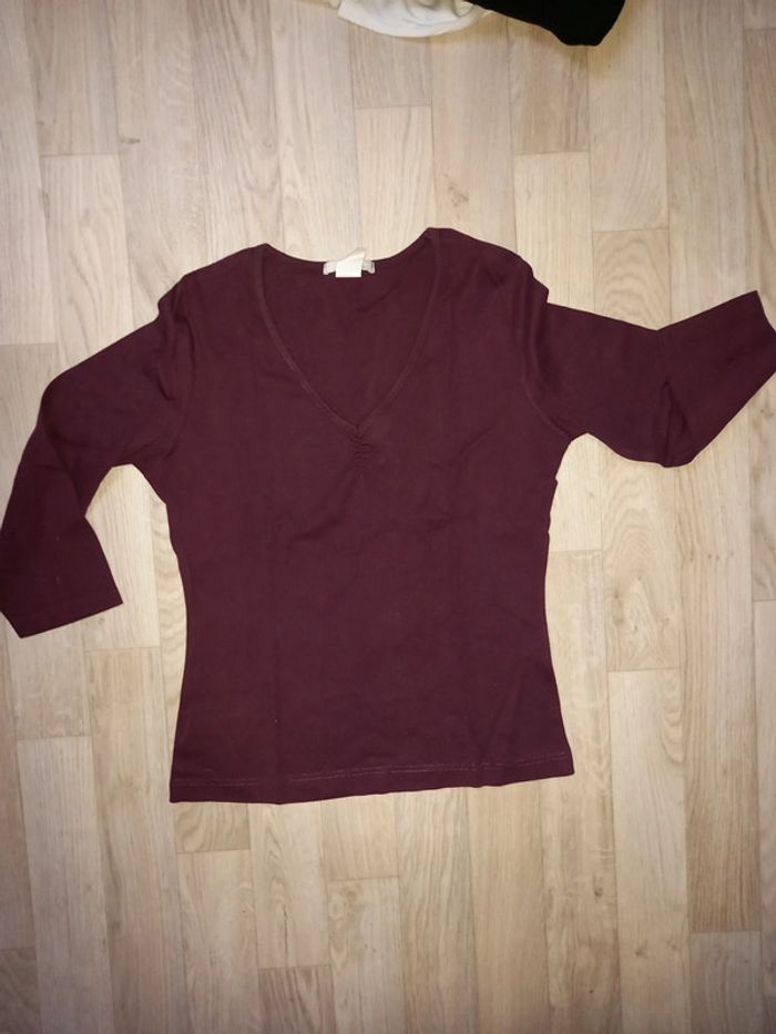 Haut col V à manches 3/4 en excellent état - photo numéro 1