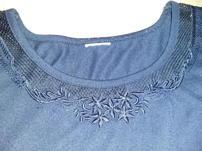 Tee-shirt manches courtes en excellent état Jolie broderie à l’encolure N'hésitez pas à demander si vous désirez des mesures de longueur, hauteur ou autres #mamoune1906_femme_du50au58