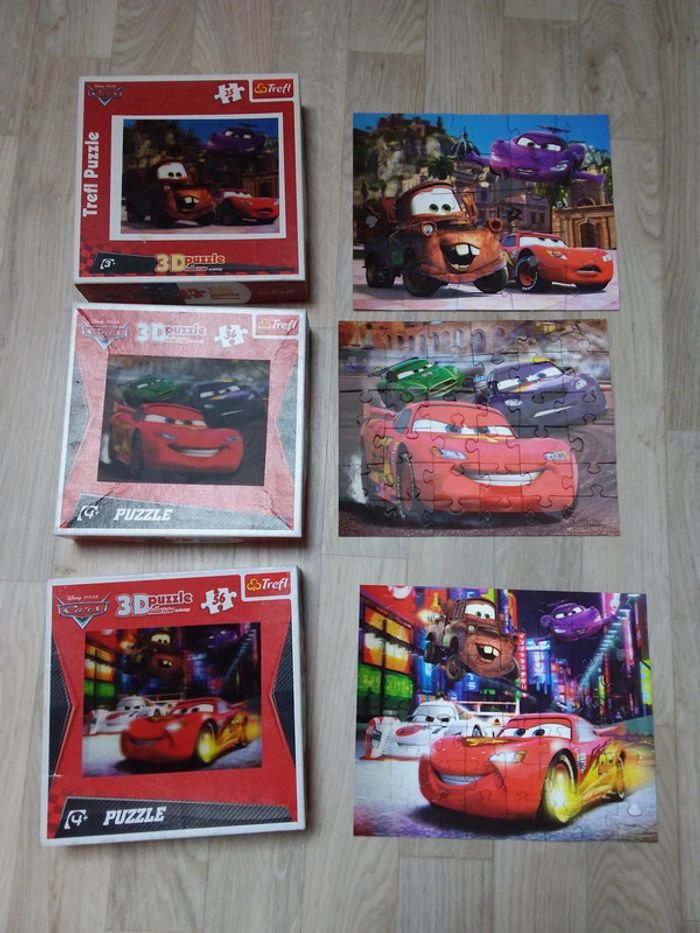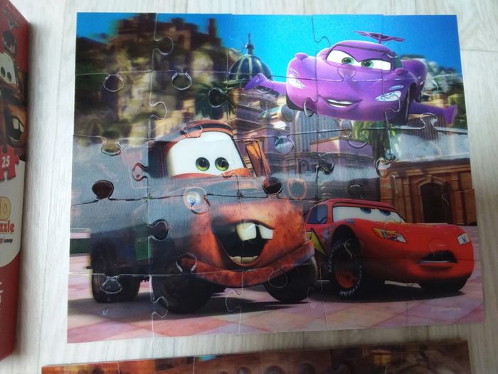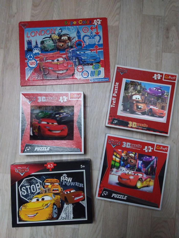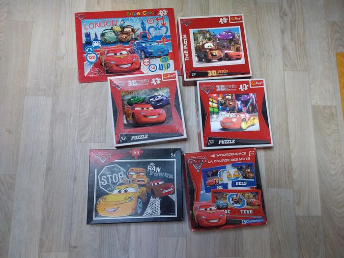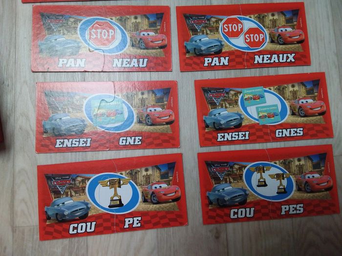 Lot de 5 puzzles Cars et un jeu puzzle Cars pour différencier le singulier du pluriel
