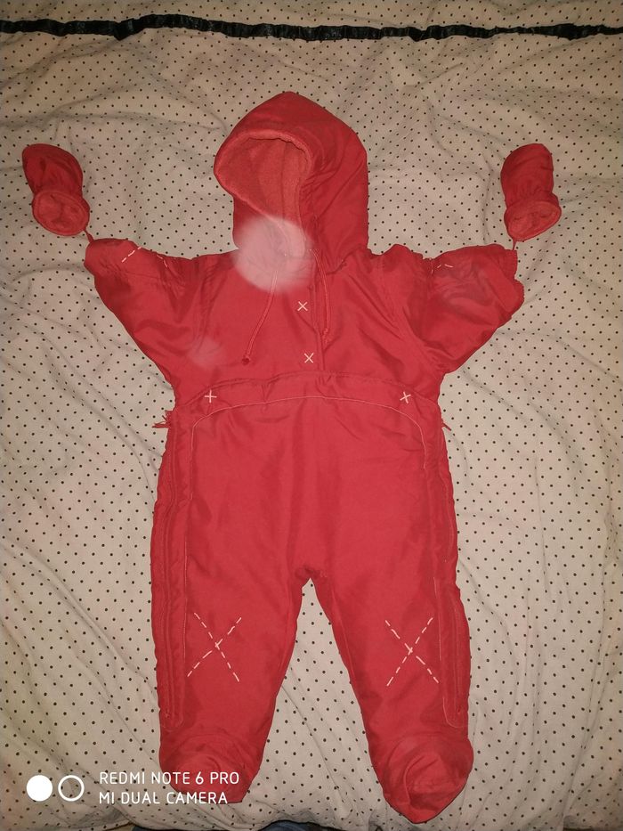 Combinaison mixte avec mouffles, il y a un léger petit trou tout en haut de la combinaison au niveau de la fermeture