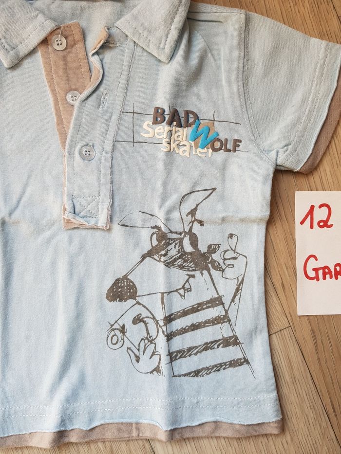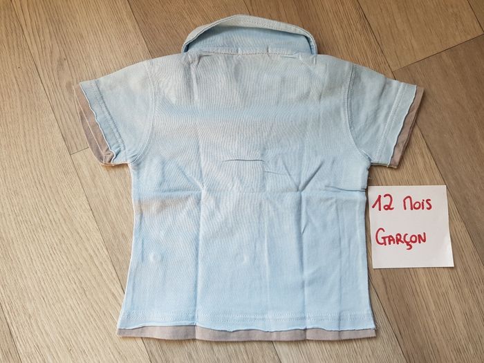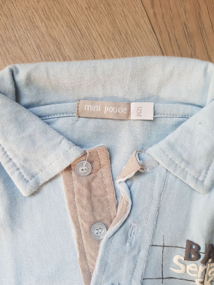 Polo manches courtes, 100% Coton, bleu clair et gris avec motif 12 mois / MINI POUCE / Garçon Très bon état