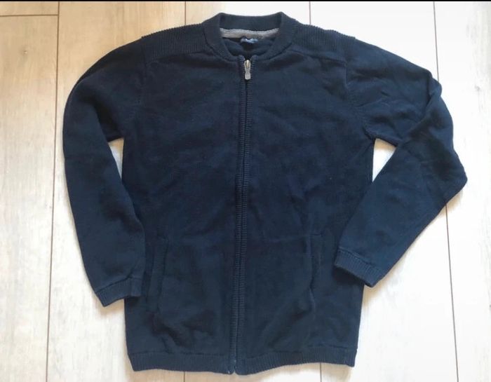 Pull zippé (type gilet) de couleur bleu marine en excellent état car très peu porté