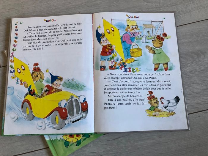 Oui oui et le vélo car Oui oui et le cerf volant En bon état. Coin un peu abîmé (voir photo)