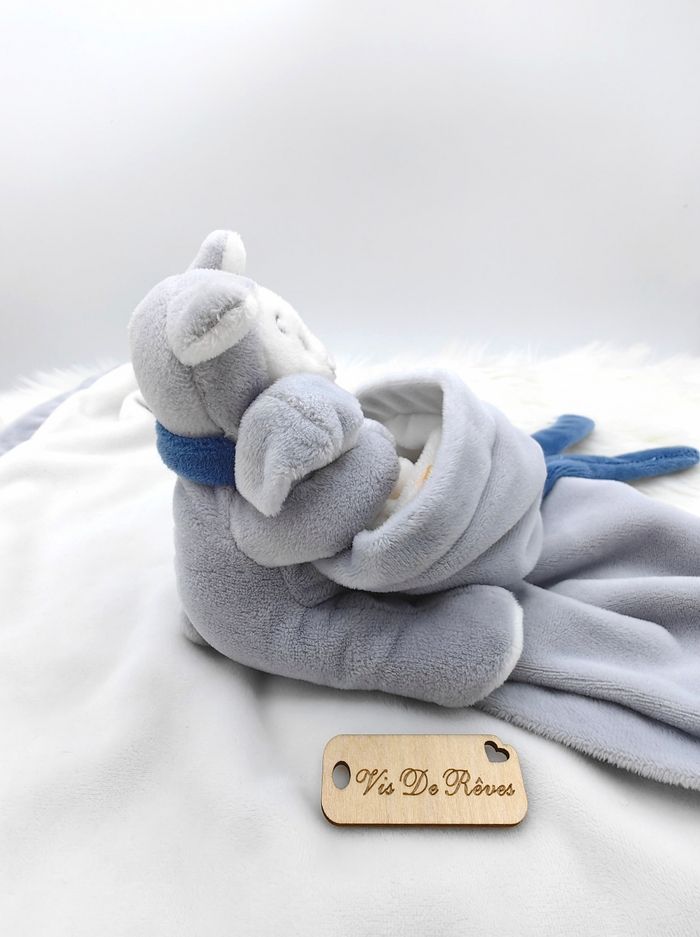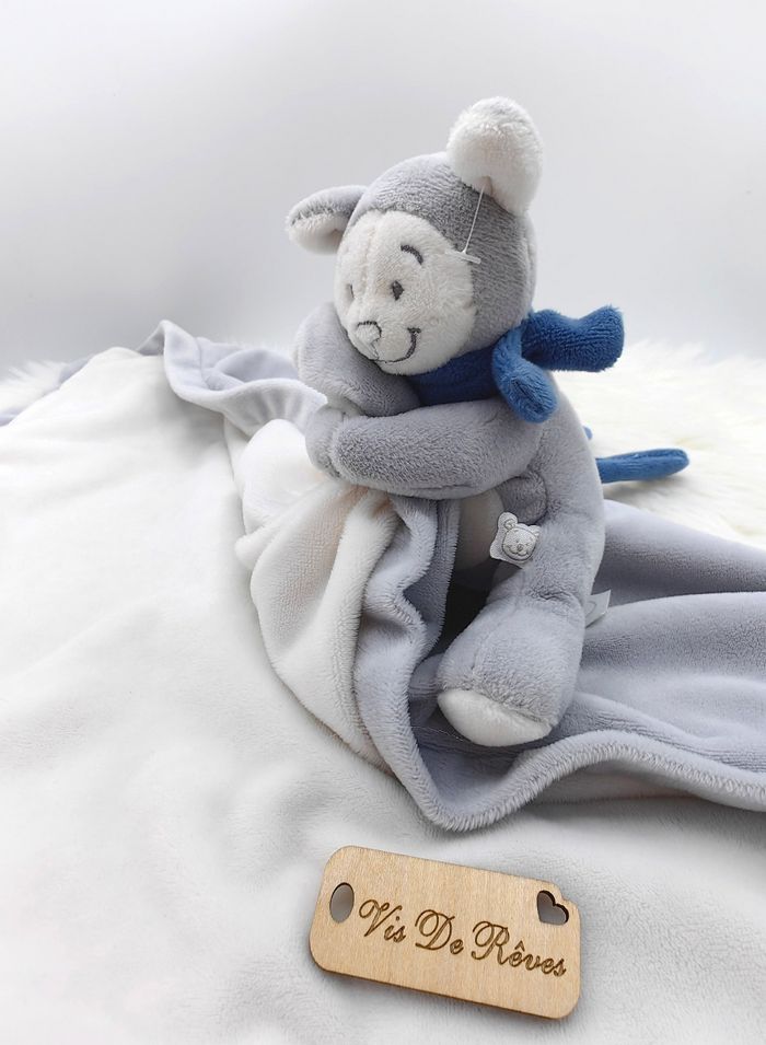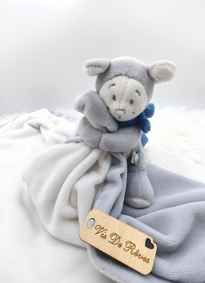Doudou couverture Mouton Agneau Victor et Guss gris blanc bleu Noukie's