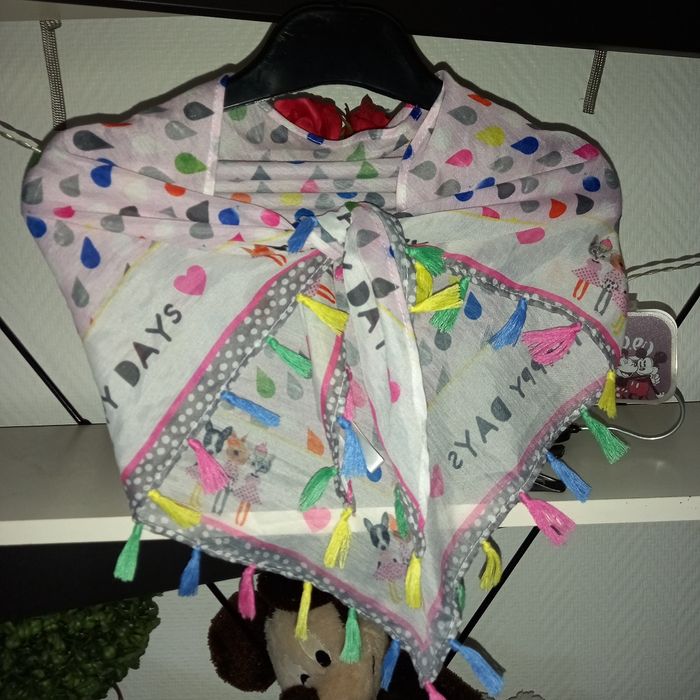 🌼Foulard neuf imprimé et pompons🌼 Foulard / bandana Neuf jamais utilisé 110cm x 65cm x2 Blanc imprimé Happy Days et animaux Pompons multicolore So cute!!! Un musthave du printemps été 🌼 #foulard #étole #bandana #Neuf #fille #blanc #imprimé #happydays #animaux #pompons #multicolore #girly #accessoire #accessoirefille #fille #adofille #préadofille #printemps #été #printempsete2022 #musthave #incontournable #sojujadfille #sojujadfilleaccessoires Envoi rapide suivi et soigne assuré 😊