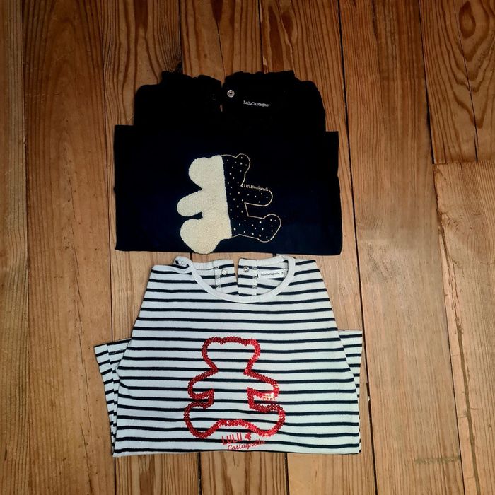 Lot de 2 tee shirts a manches longues pour bebe fille en taille 3 ans. En tres bon état. De la marque lulu castagnette.