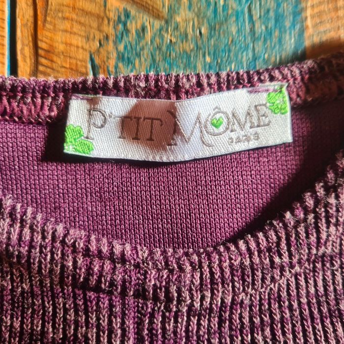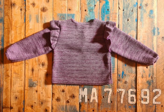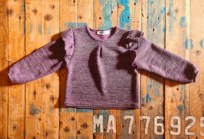 Tres joli pull d hiver pour bebe fille de couleur violine a volants. Marque p'tit môme. En parfait état. Taille 3 ans.