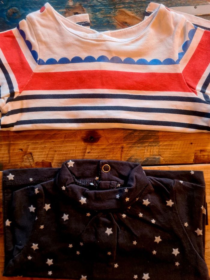 Lot de 6 tee shirts a manches longues pour bebe fille en taille 3 mois. Differentes marques. Bon état.