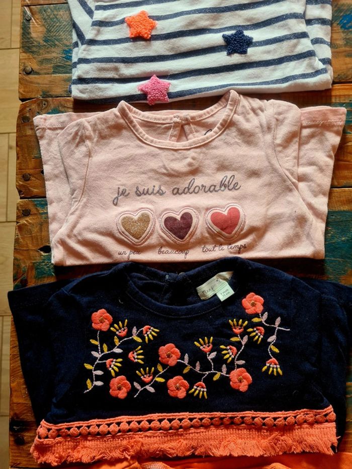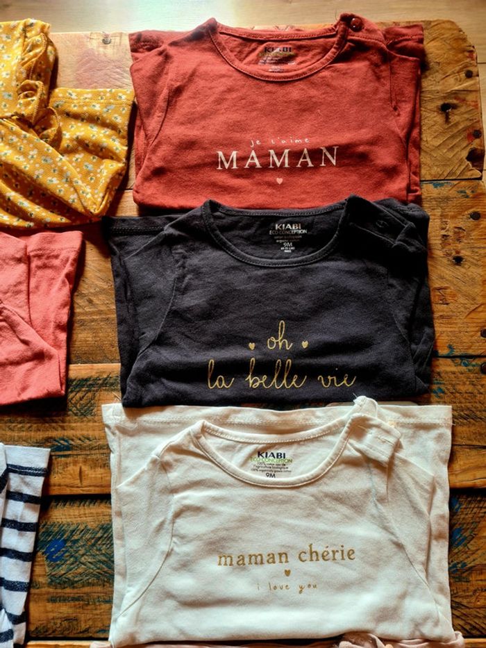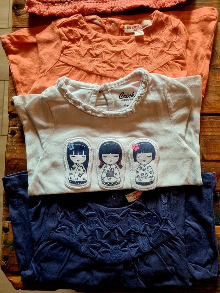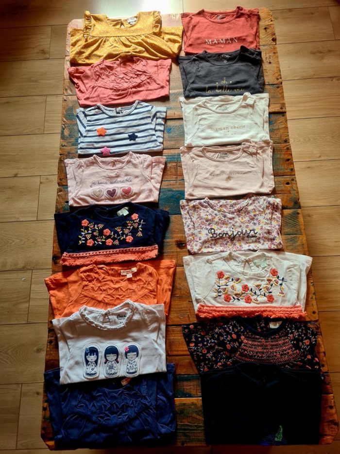 Lot de 16 tee shirts a manches longues pour bebe fille en taille 9 mois. Differentes marques. Possibilité de faire 2 lots. En bon état.