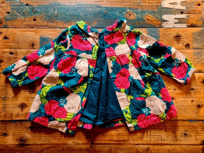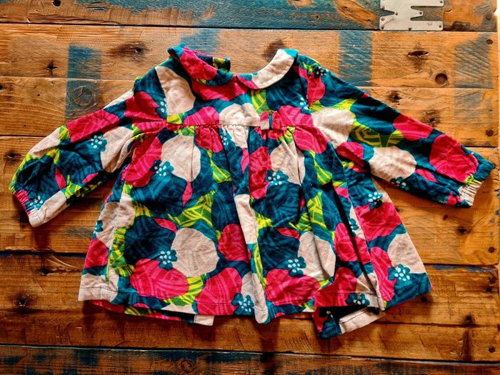 Jolie blouse d hiver pour bébé fille de la marque dpam en taille 9 mois soit 71 cm. En velours cotelé. En tres bon état.